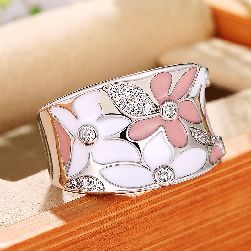 Huitan Aesthetic Enamel Flower Finger Ring for Women Wedding Party New 2023 Ring Silver Color Luxury Cubic Zirconia Jewelry Gift