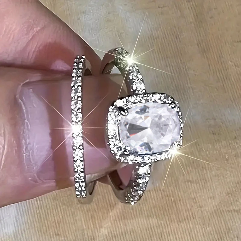 Be the first to review “Huitan Trendy Brilliant Rings 2Pc/Set with Sparkling Cubic Zircon for Women Honorable Wedding Bridal Jewelry Set Chic Accessory”
