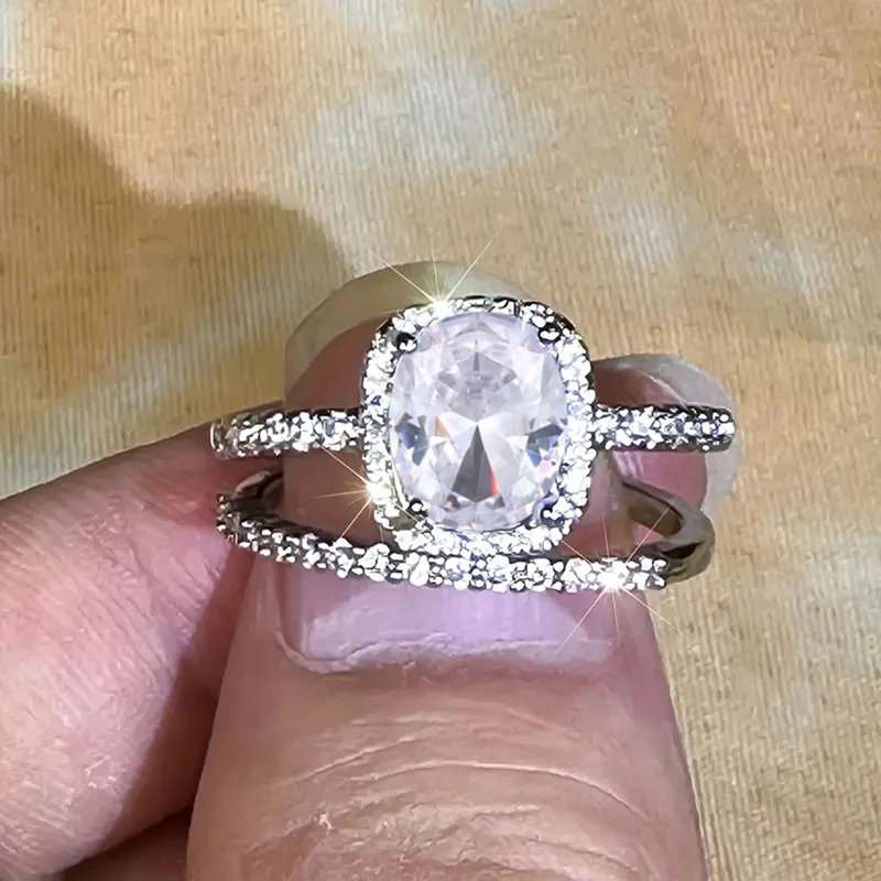 Huitan Trendy Brilliant Rings 2Pc/Set with Sparkling Cubic Zircon for Women Honorable Wedding Bridal Jewelry Set Chic Accessory