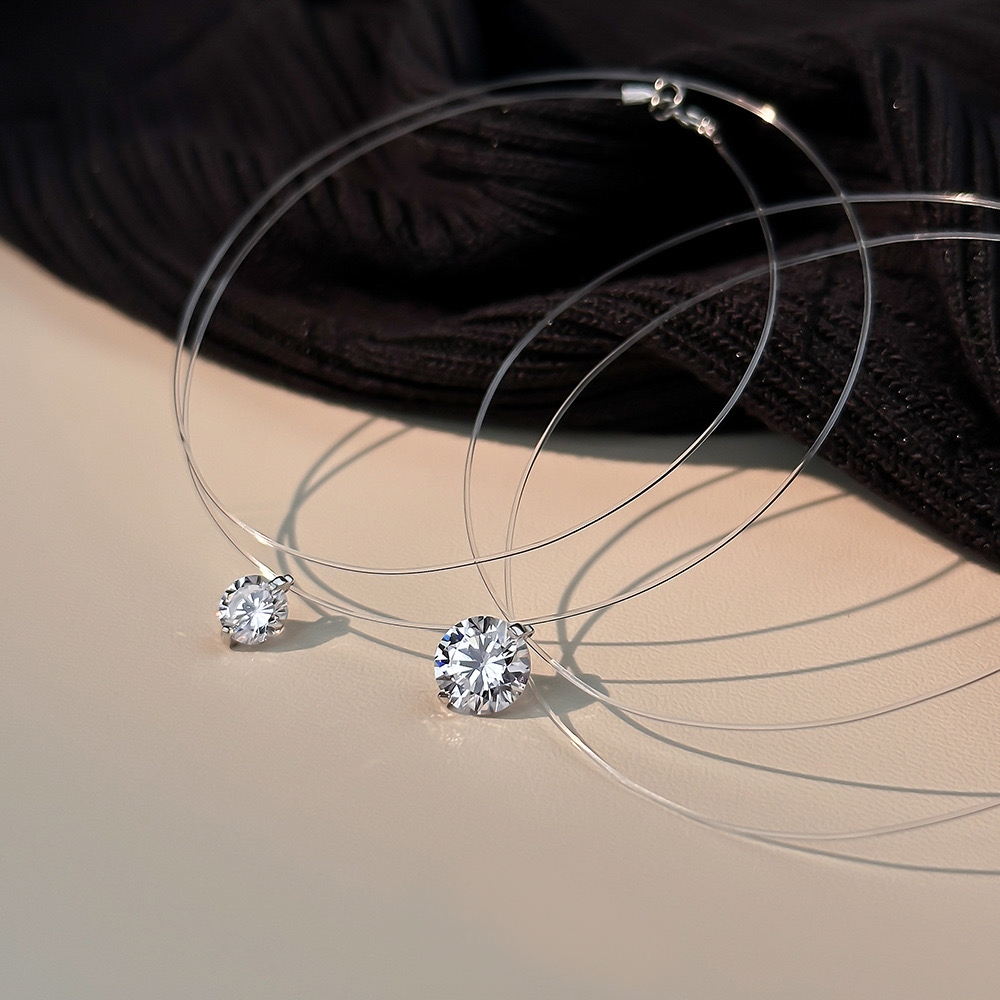 IGOTOS 0.5-5CT Moissanite Pendant Necklace Women Certified 925 Sterling Silver Transparent Fishing Line Choker Chain Jewelry