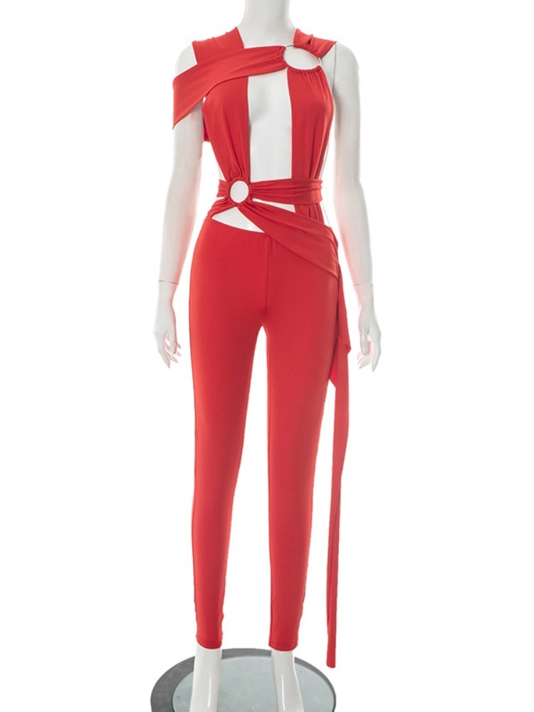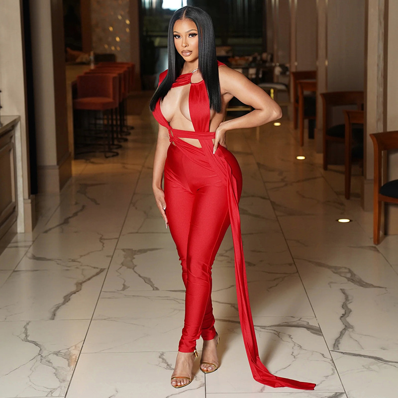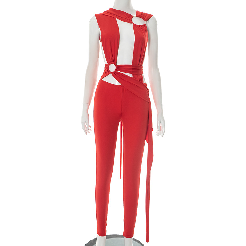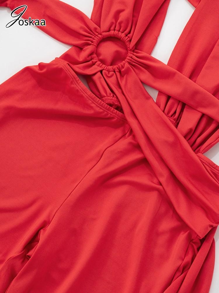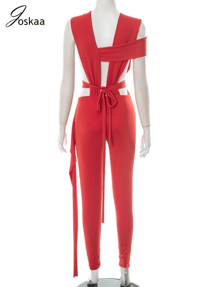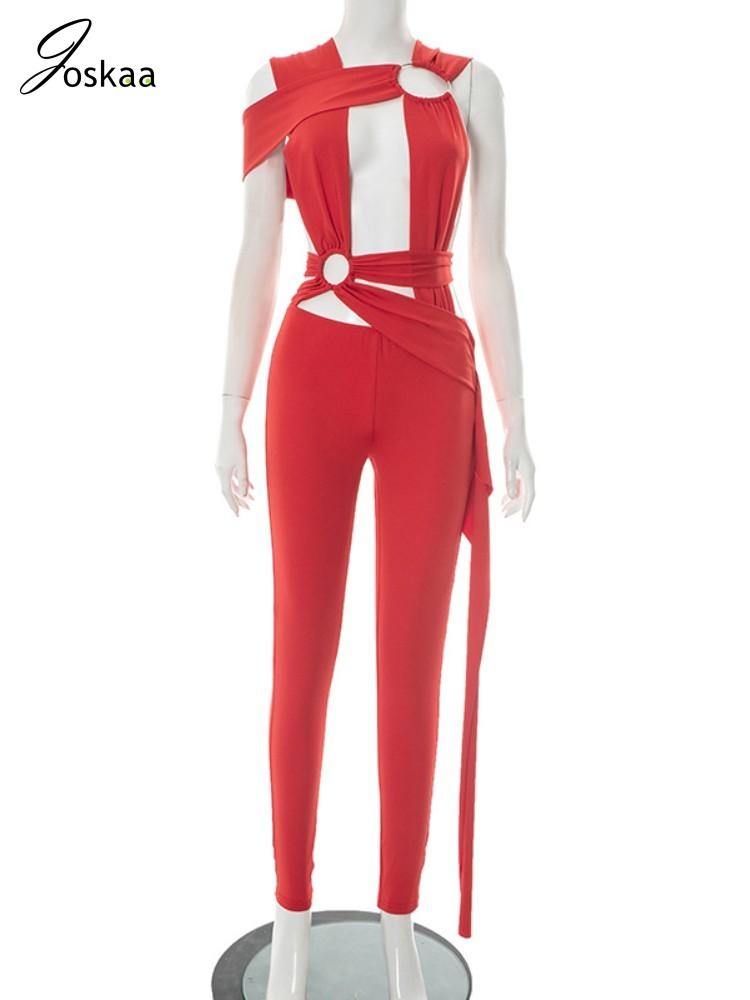 Joskaa Sexy Hollow Bandage Irregular Jumpsuit Women Summer Sleeveless Backless Ribbon Skinny Rompers 2025 Midnight Clubwear