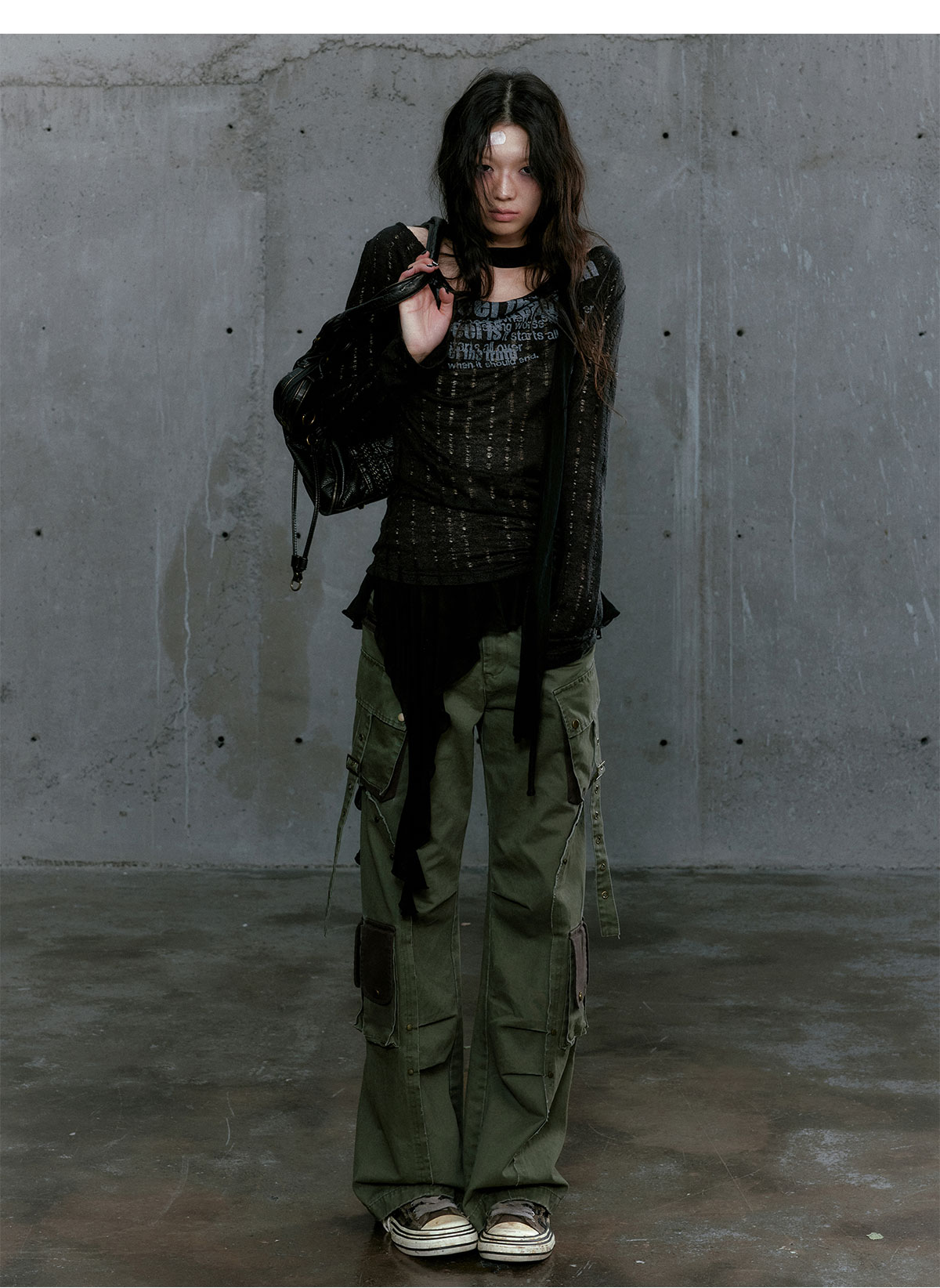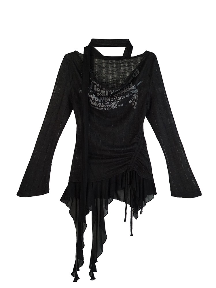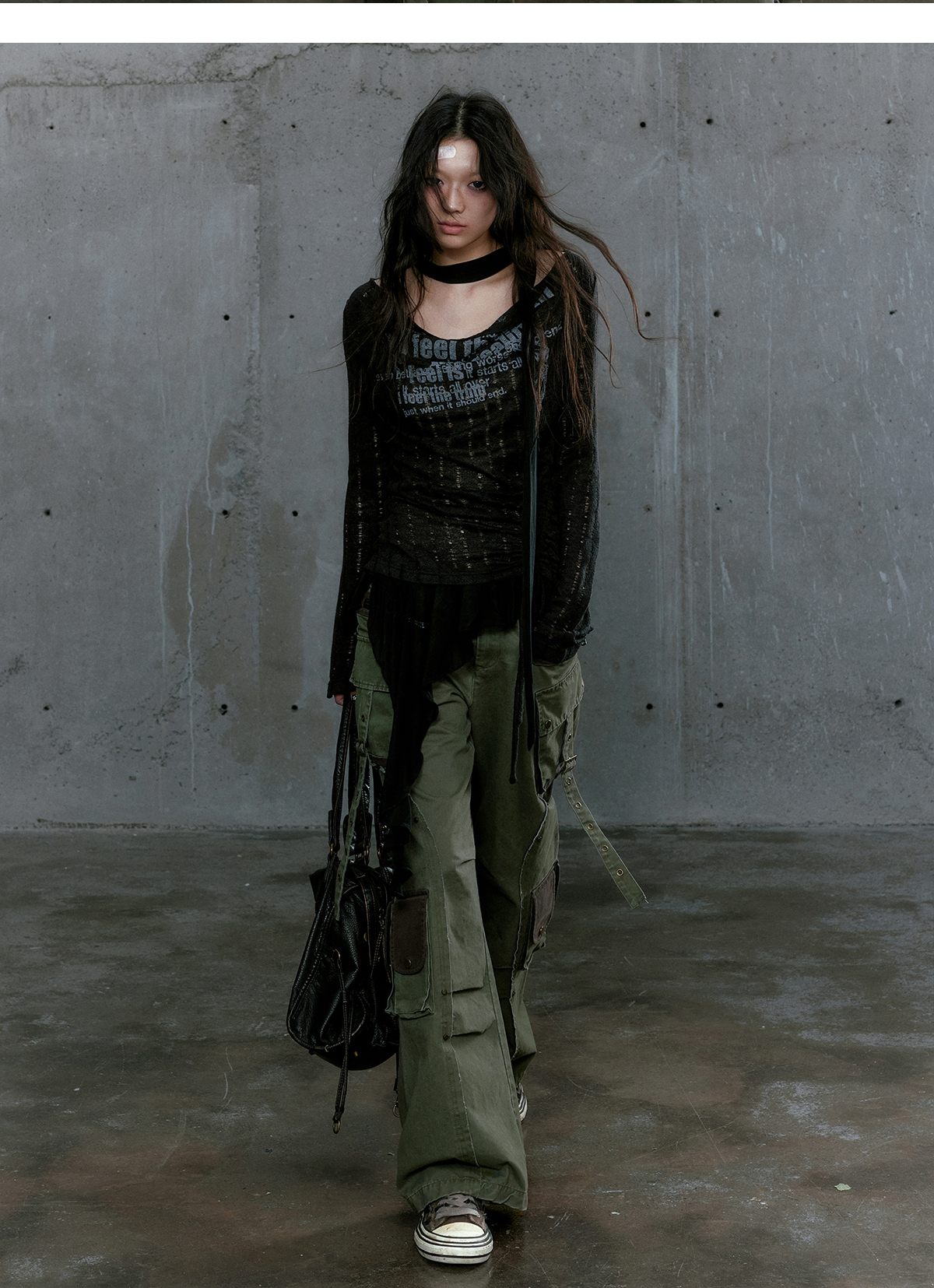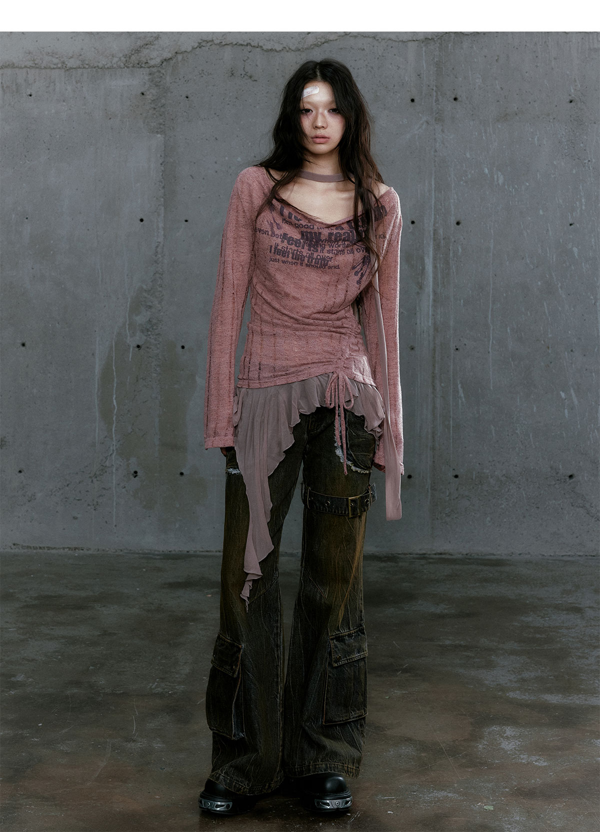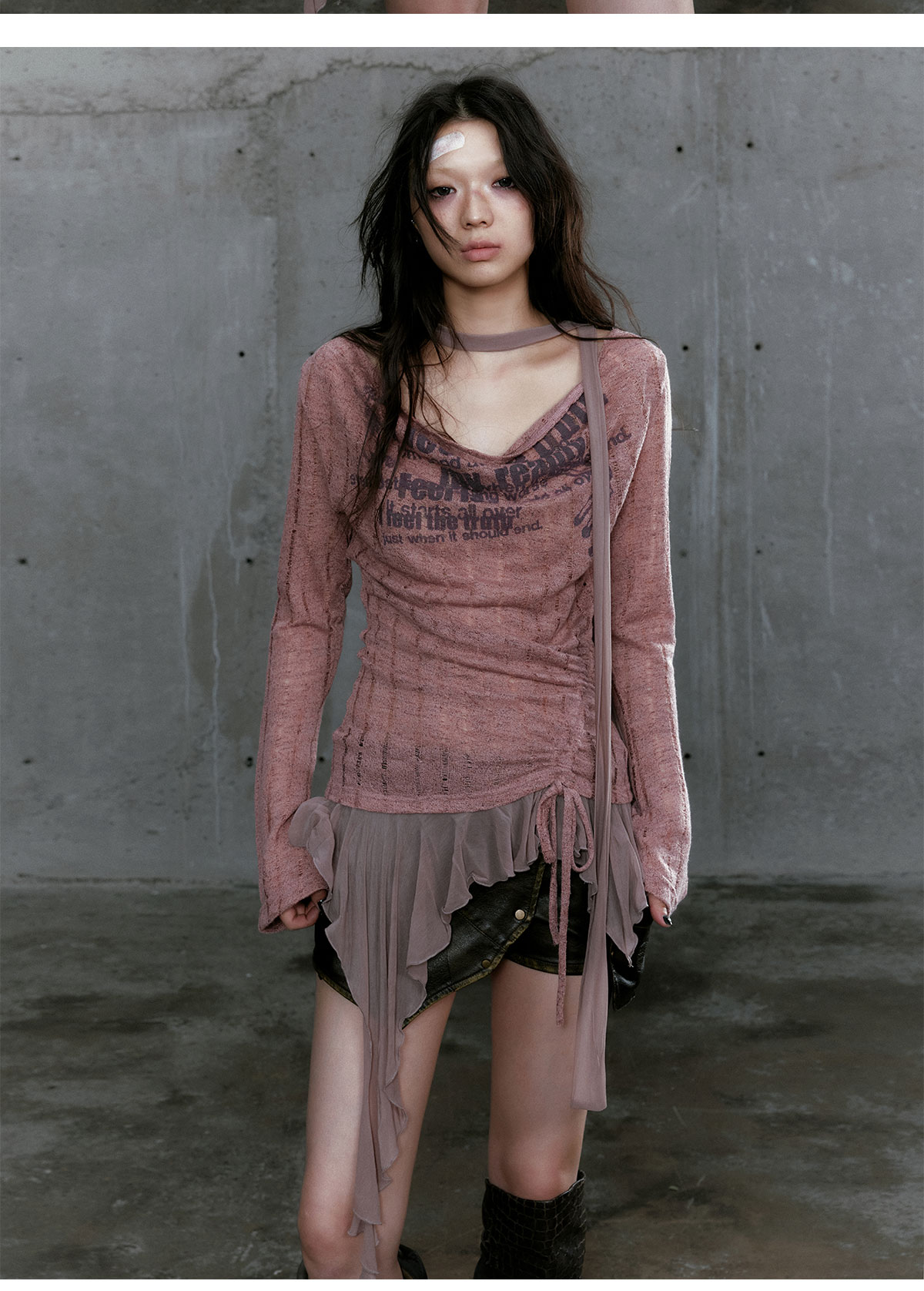 Karrcat Grunge Aesthetics Knitted Tops Trashy Y2k Graffiti Print T-shirt Vintage Punk Irregular Patchwork Knitwear High Street