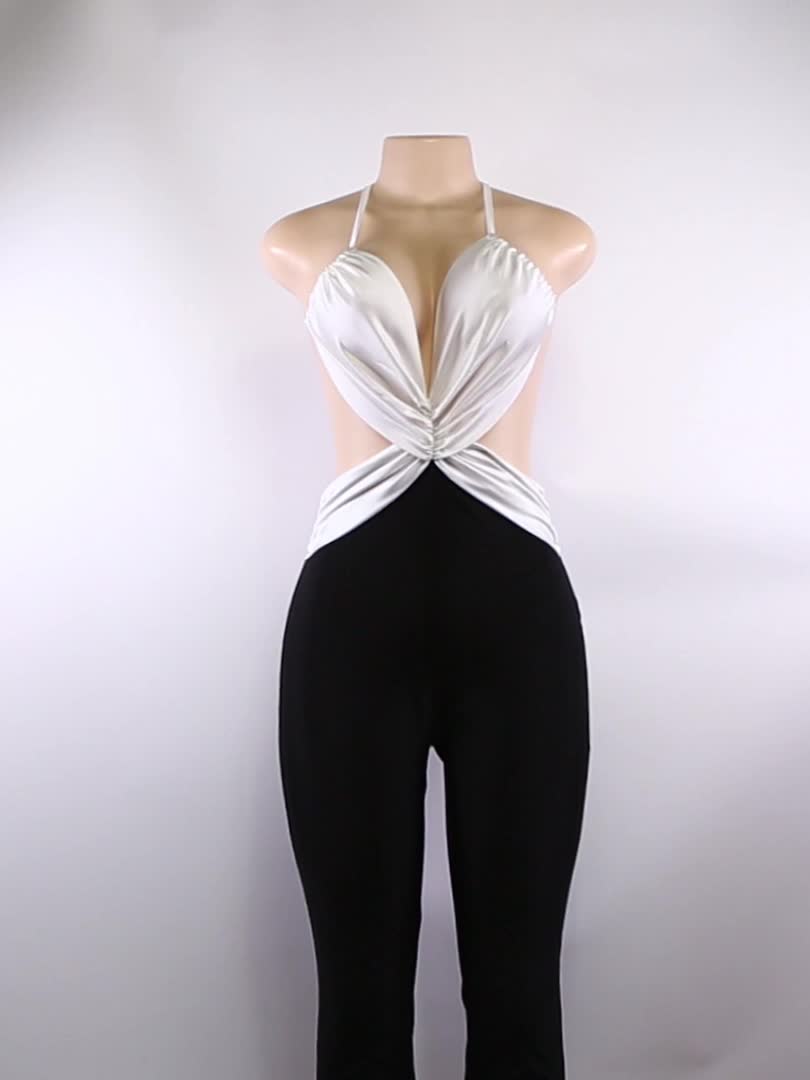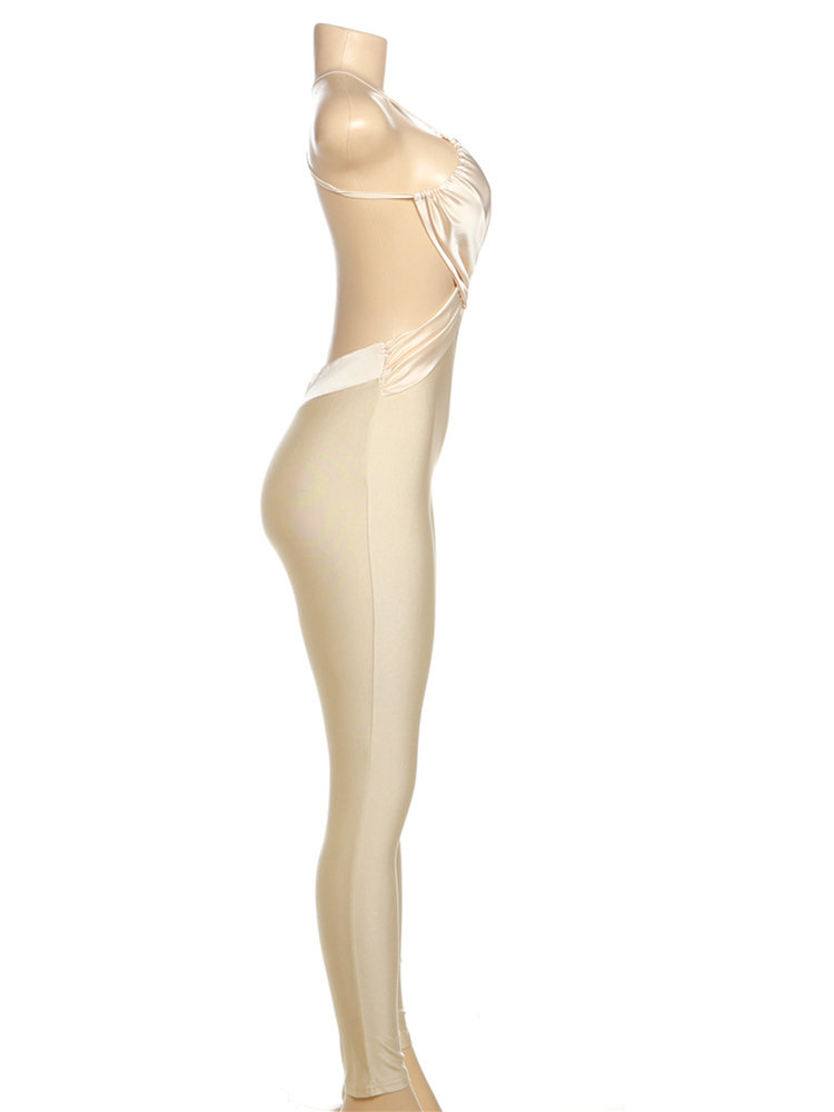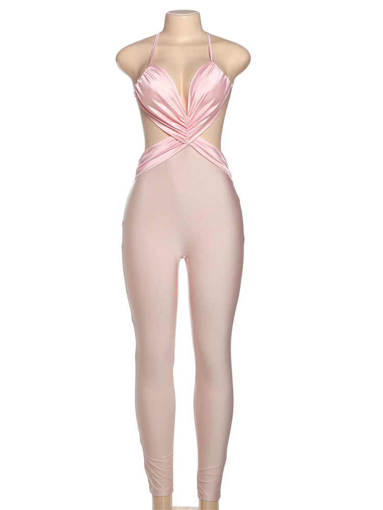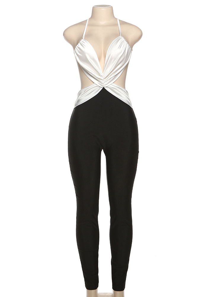 kliou Cross Pleated Women Jumpsuits Sexy Stunning Bandage Backless Silky Skinny Overalls Female Summer Party Clubwear One Piece
