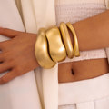KMVEXO Punk Frosted Matte Metal Geometric Chunky Spring Bangles for Women Gold Color Wide Irregular Bangle Bracelets JewelryUSD 4.94-5.32/piece