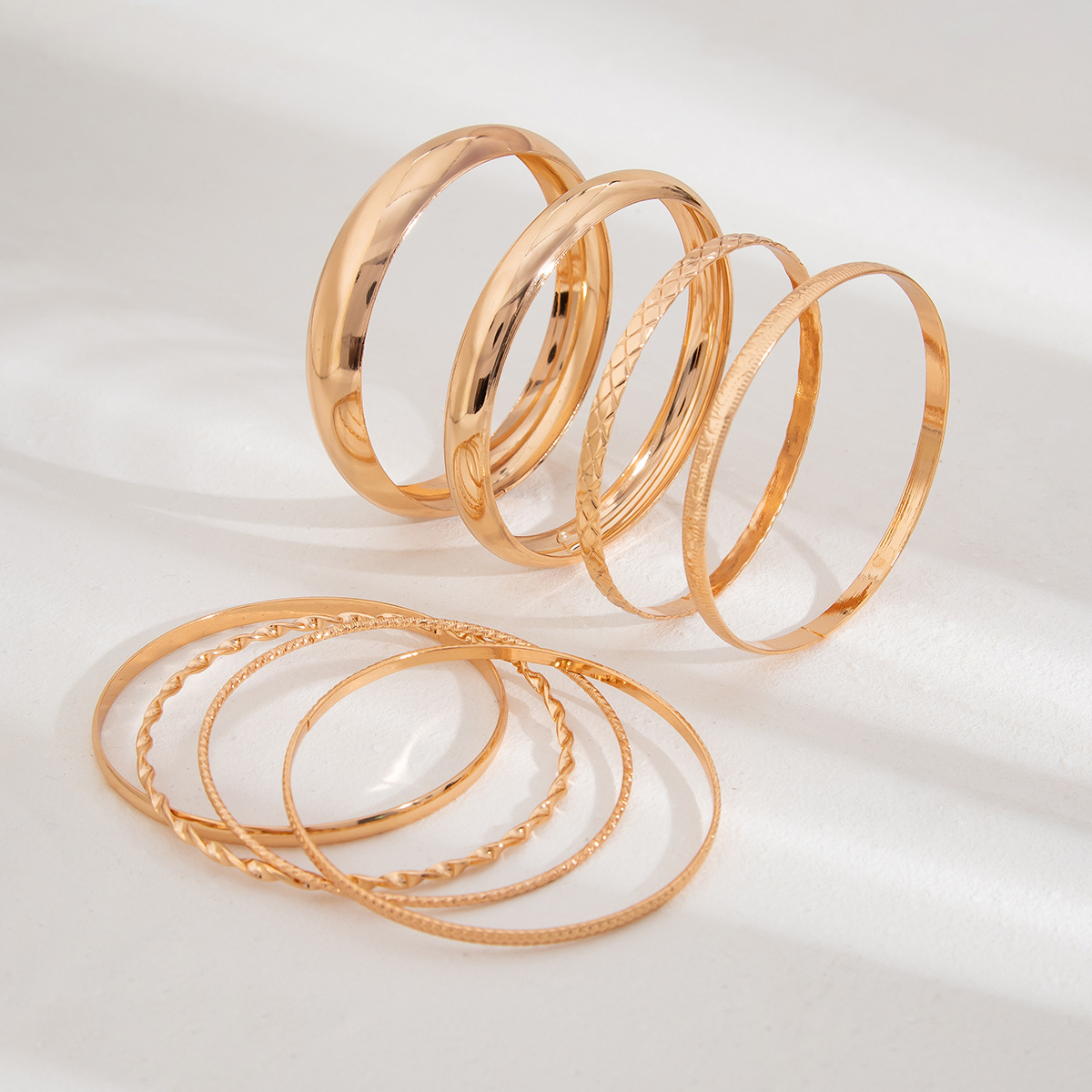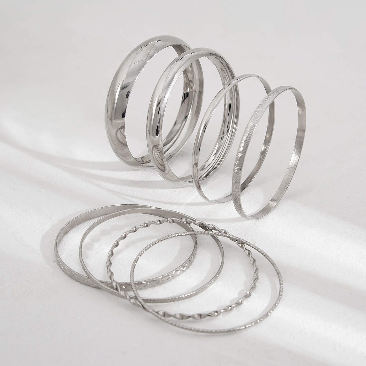 3 reviews for KMVEXO Stainless Steel Bracelets Set for Women Men Twist Texture Bangles Gold Silver Color Jewelry Statement Streetwear Goth