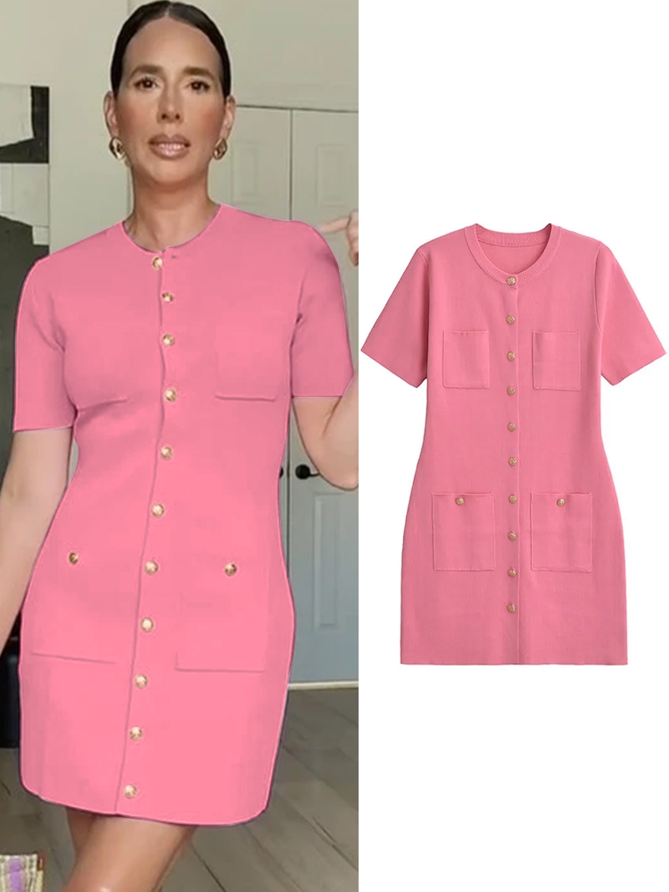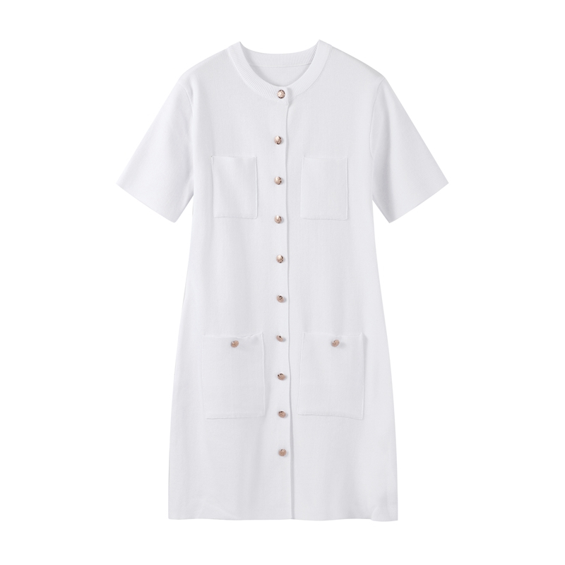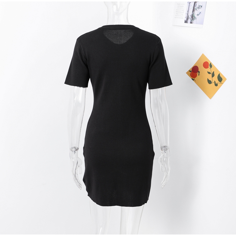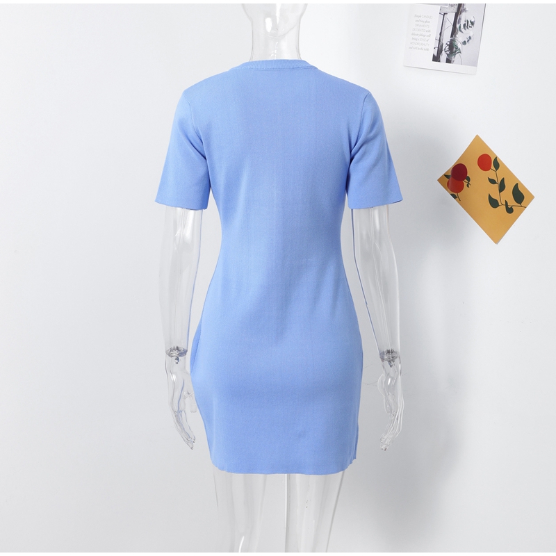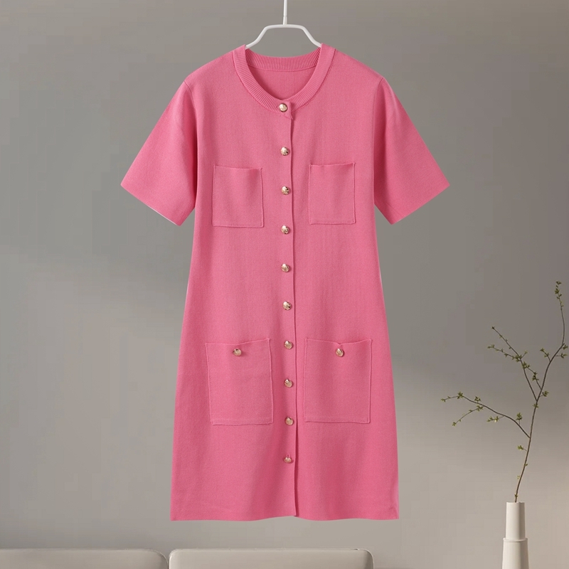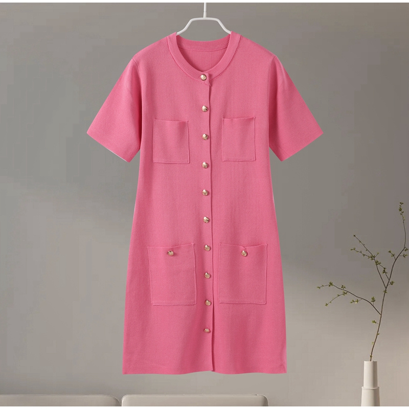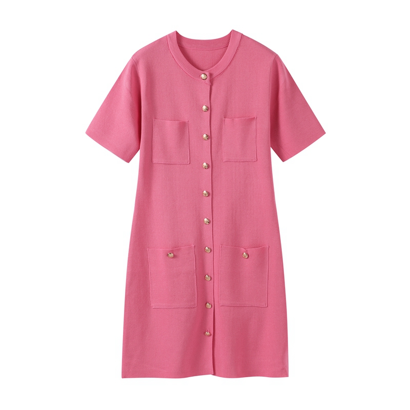 Knitted Casual Mini Dress Women Single Breasted Slim Short Sleeve Solid Pocket Hip Package Dresses Female 2024 New Office Robe