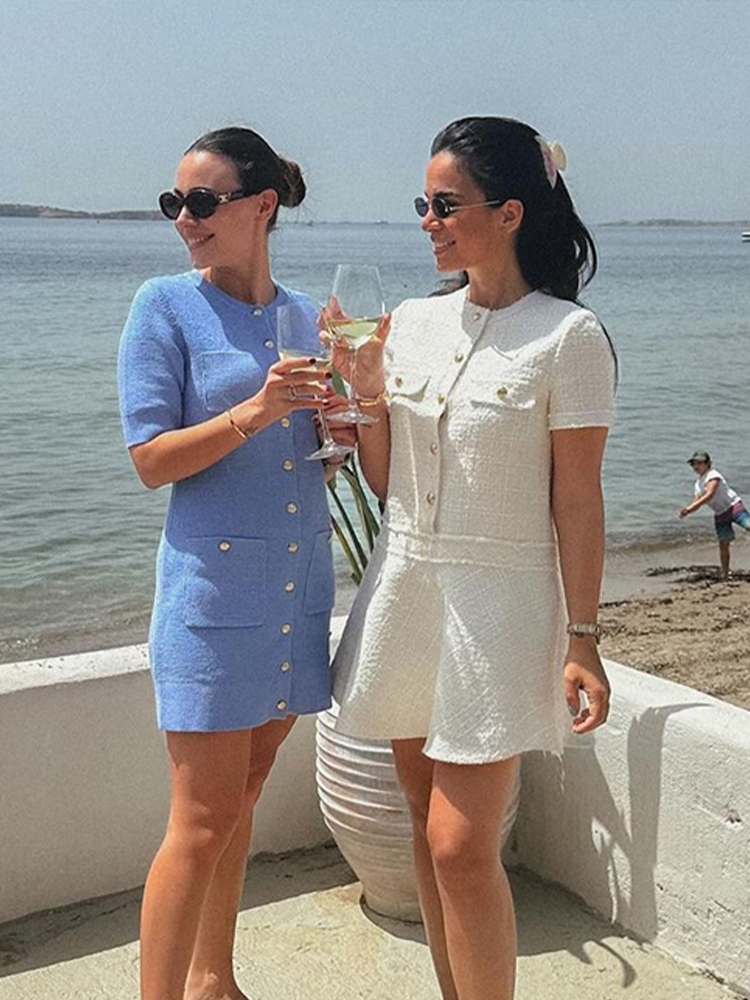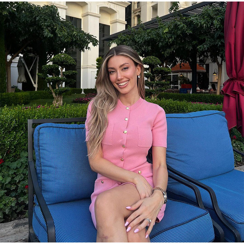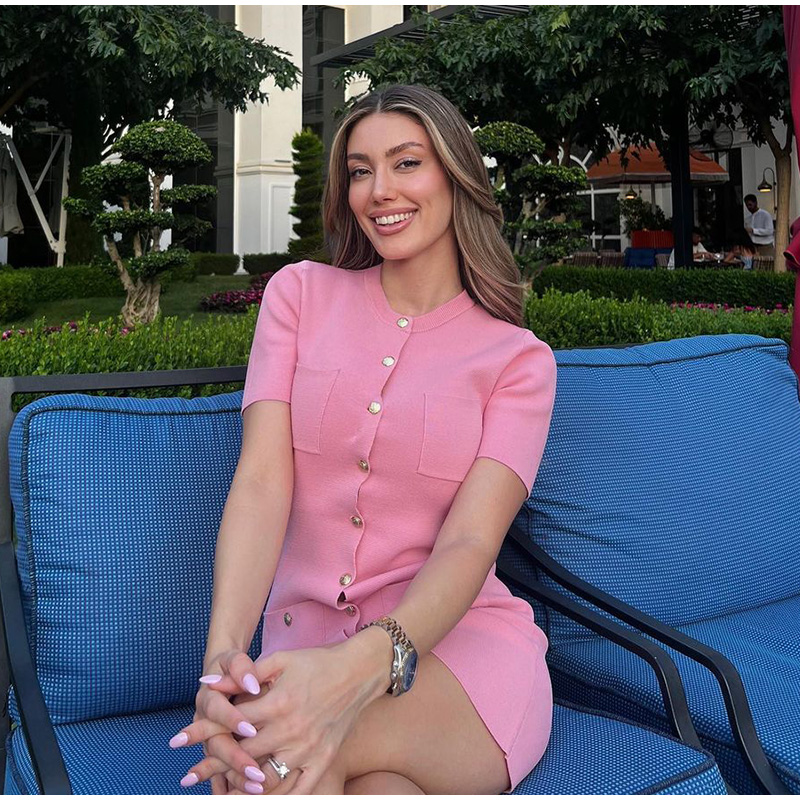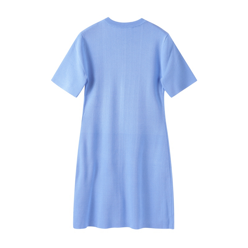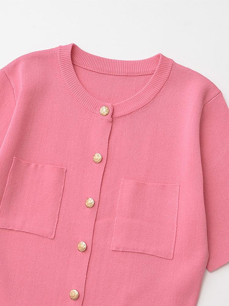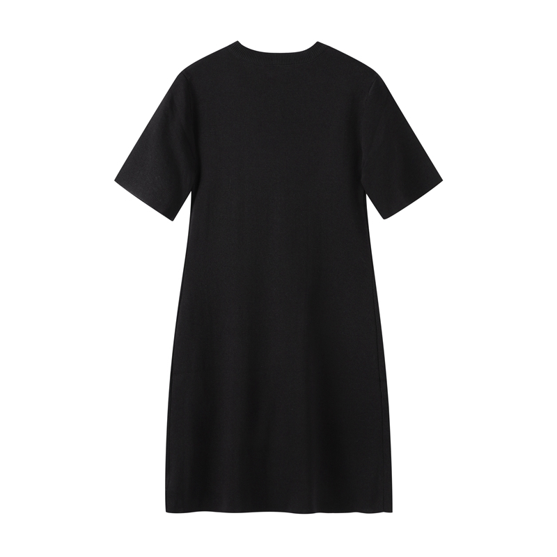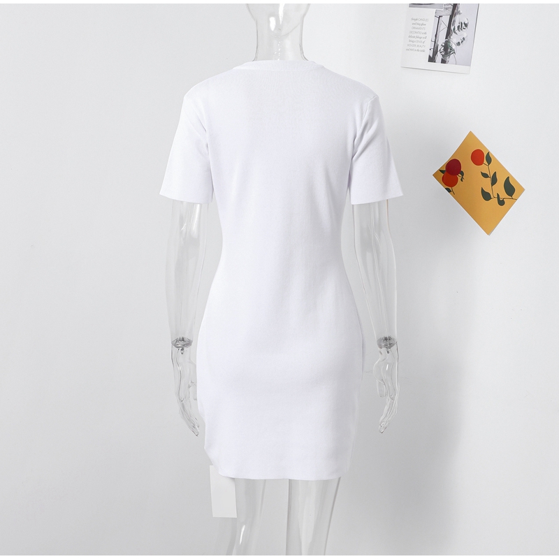 Knitted Casual Mini Dress Women Single Breasted Slim Short Sleeve Solid Pocket Hip Package Dresses Female 2024 New Office Robe