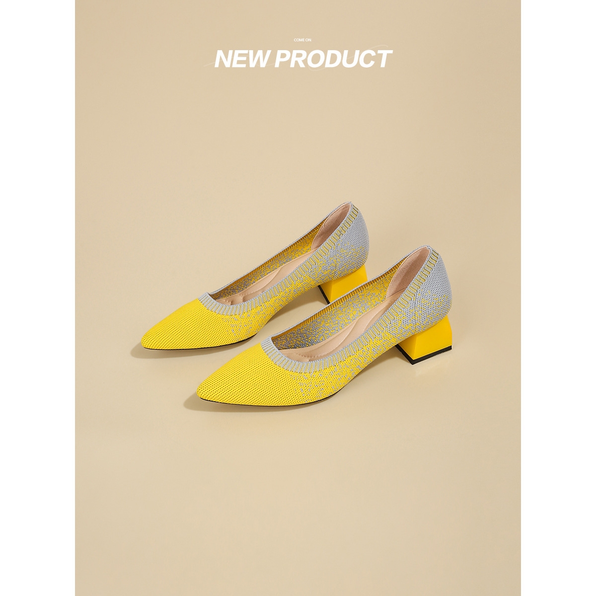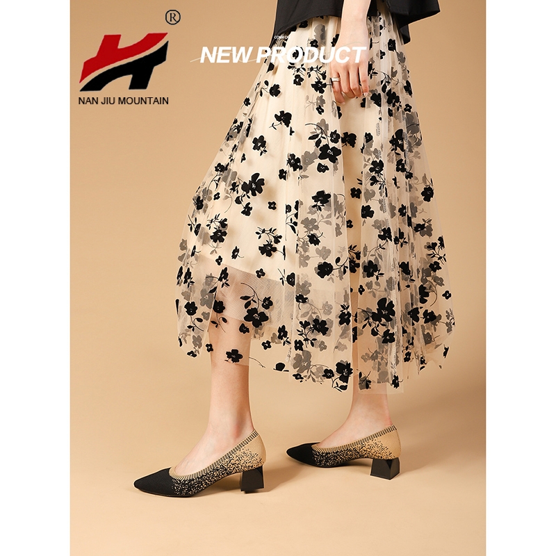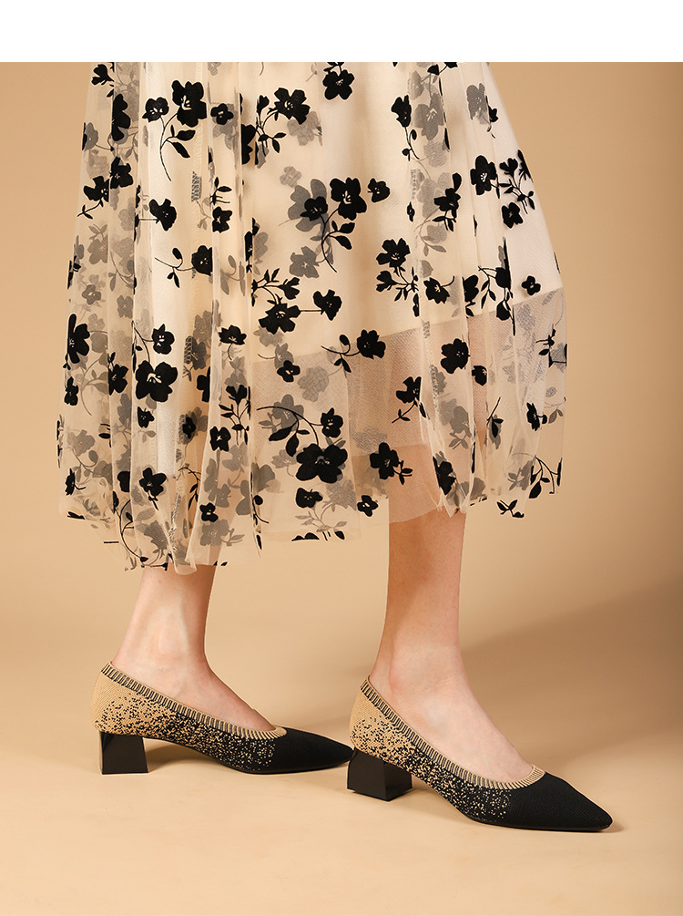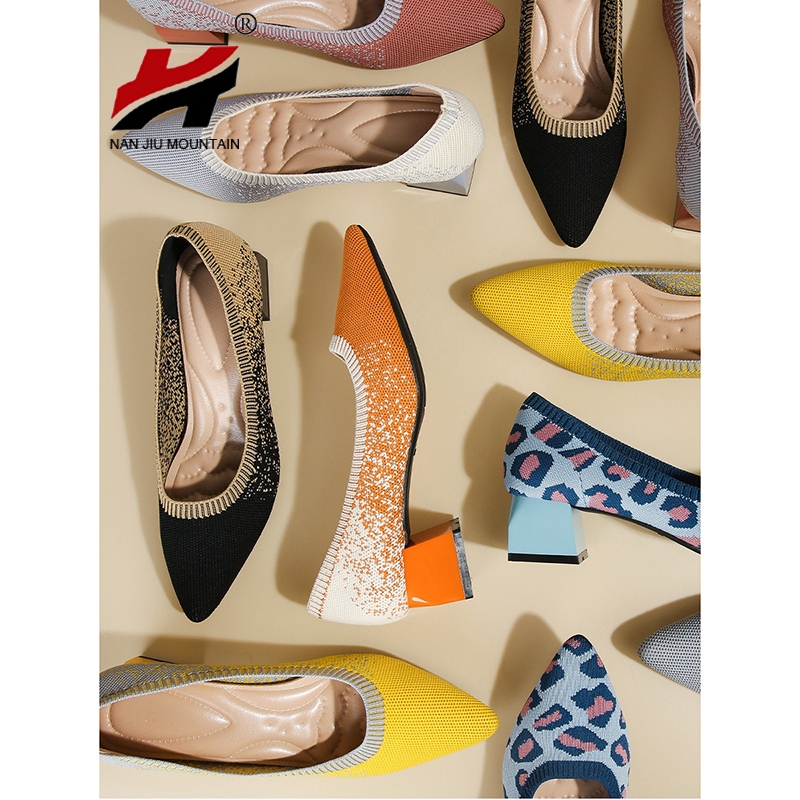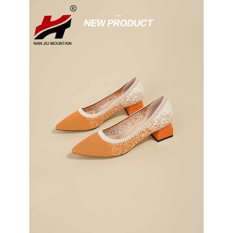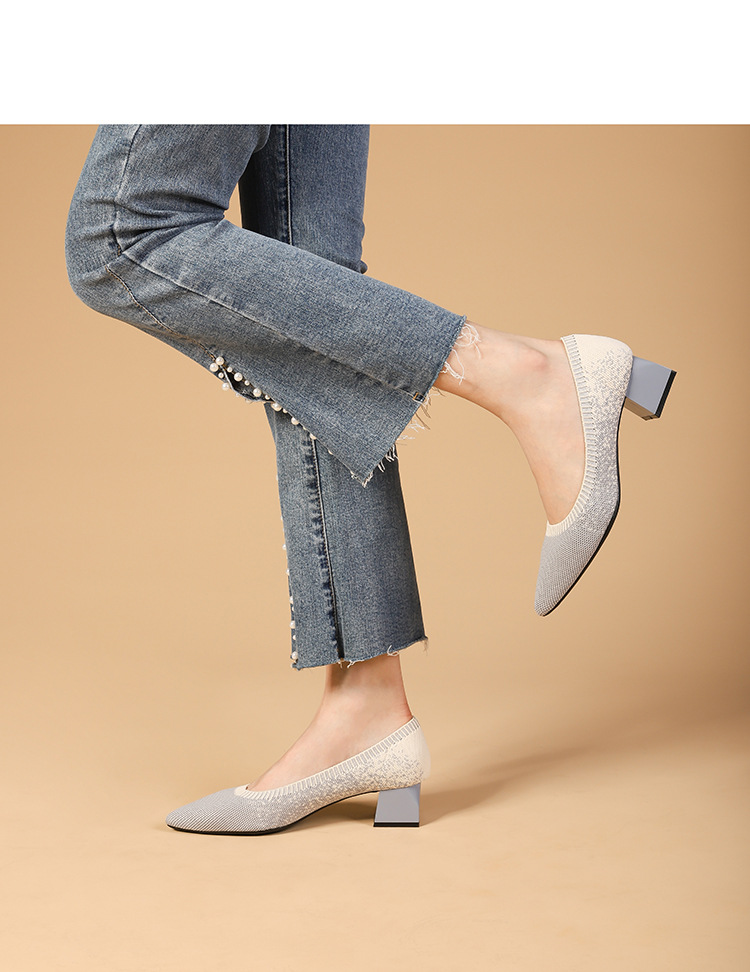 Knitting Single Shoes Pointed Toe Low Heels Shoes Women Spring And Autumn Small High Heels