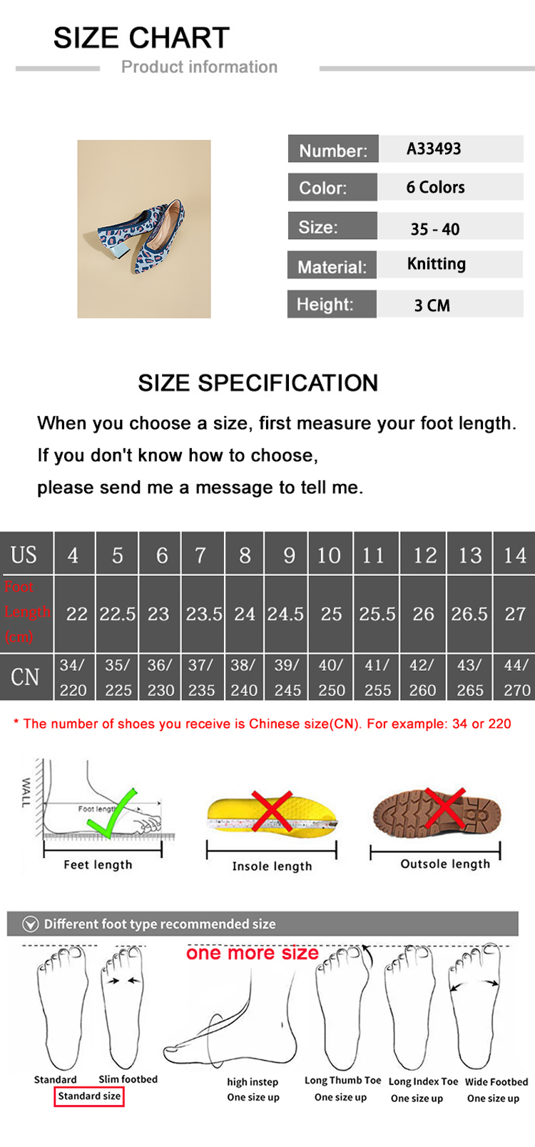 Shoe size 5 = CN 35 = feet length 22.5 cm