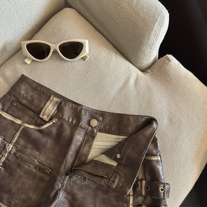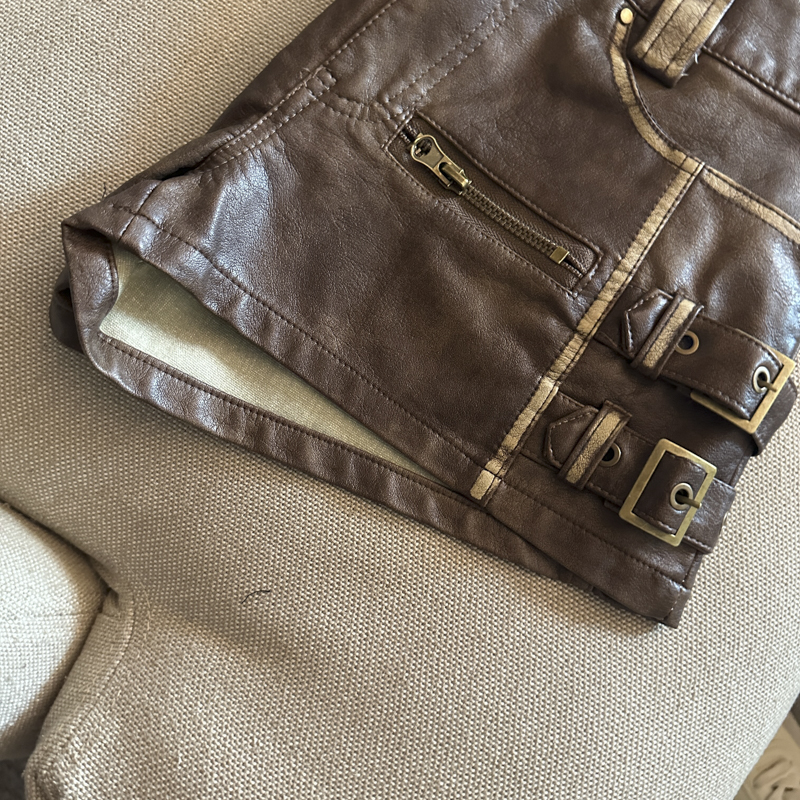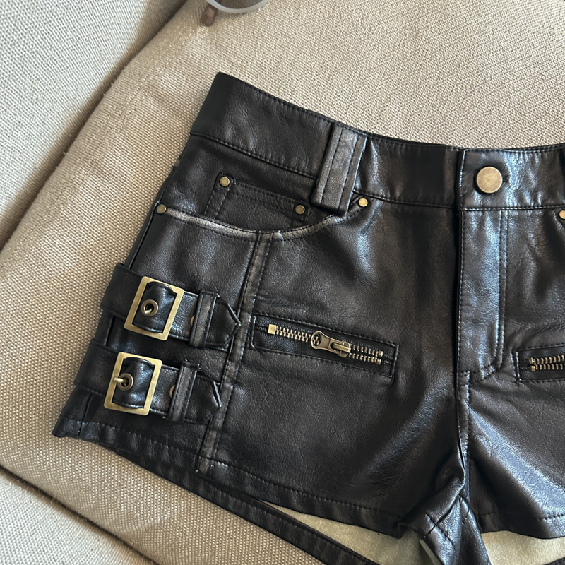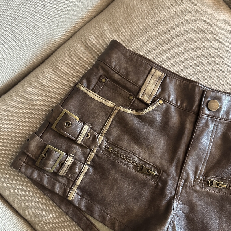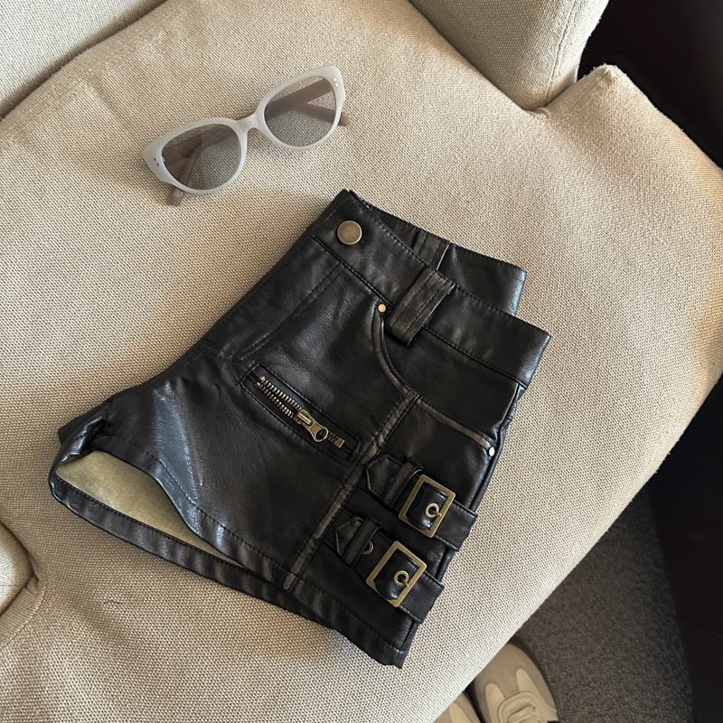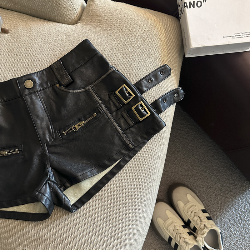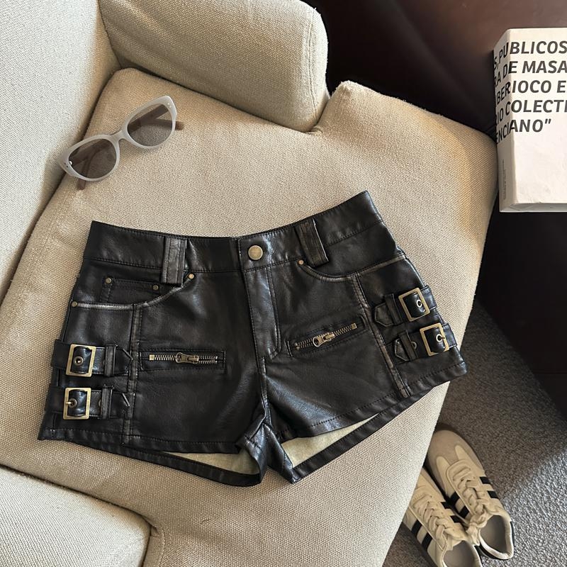 Korean Vintage Women’s Black Pu Leather Sexy Club Shorts Summer Brown High Waist Fashion Ladies Vacation Short Pant Streetwear