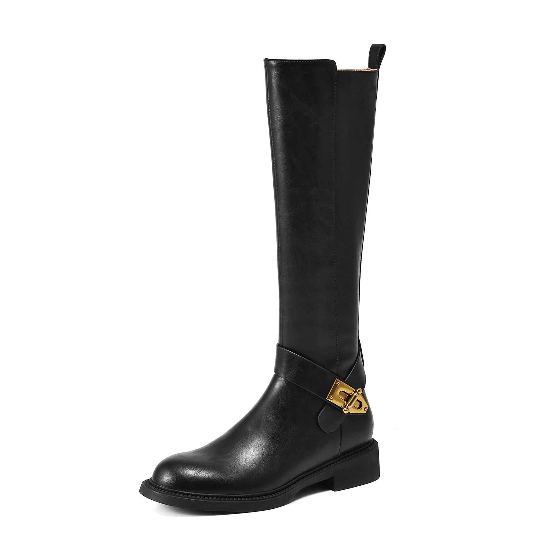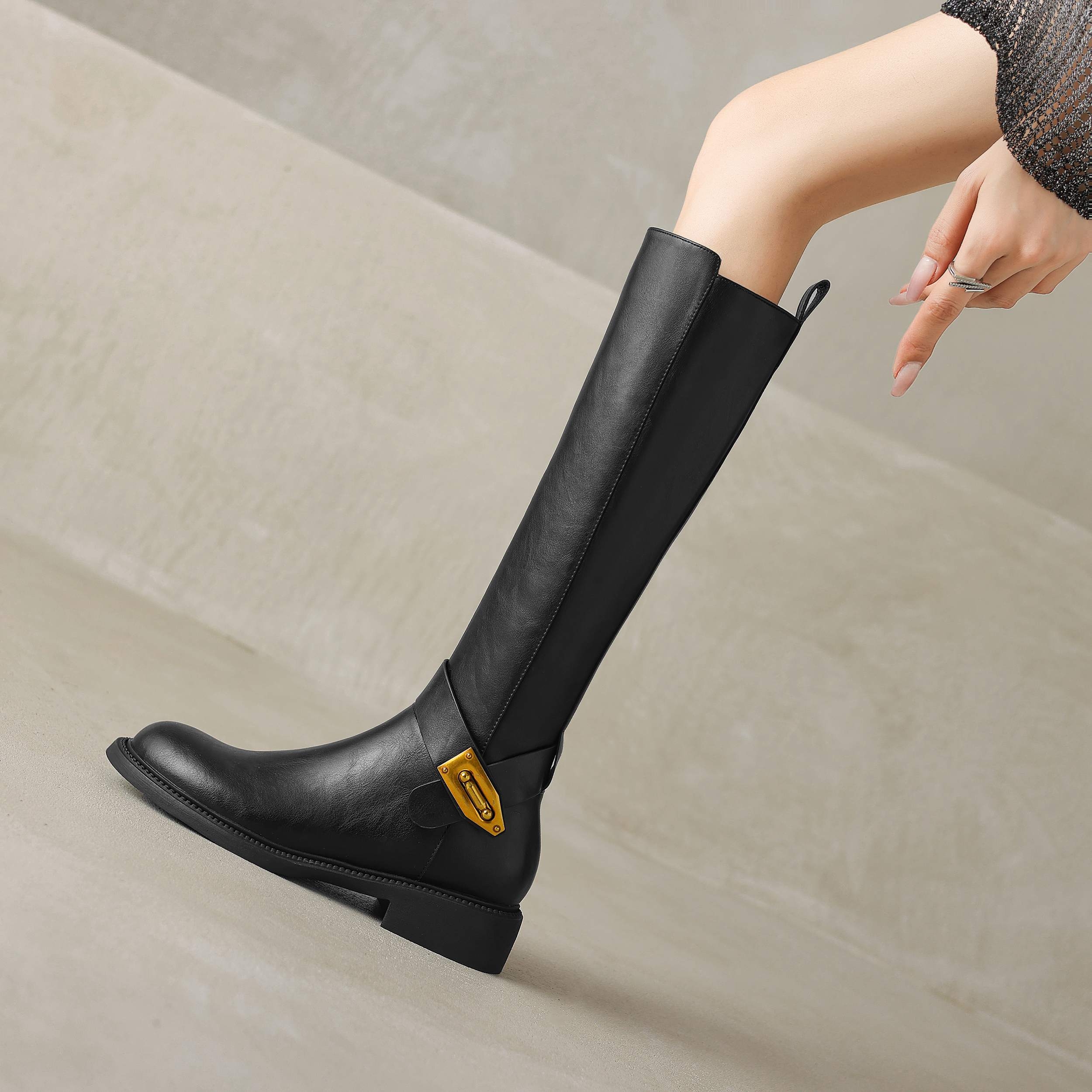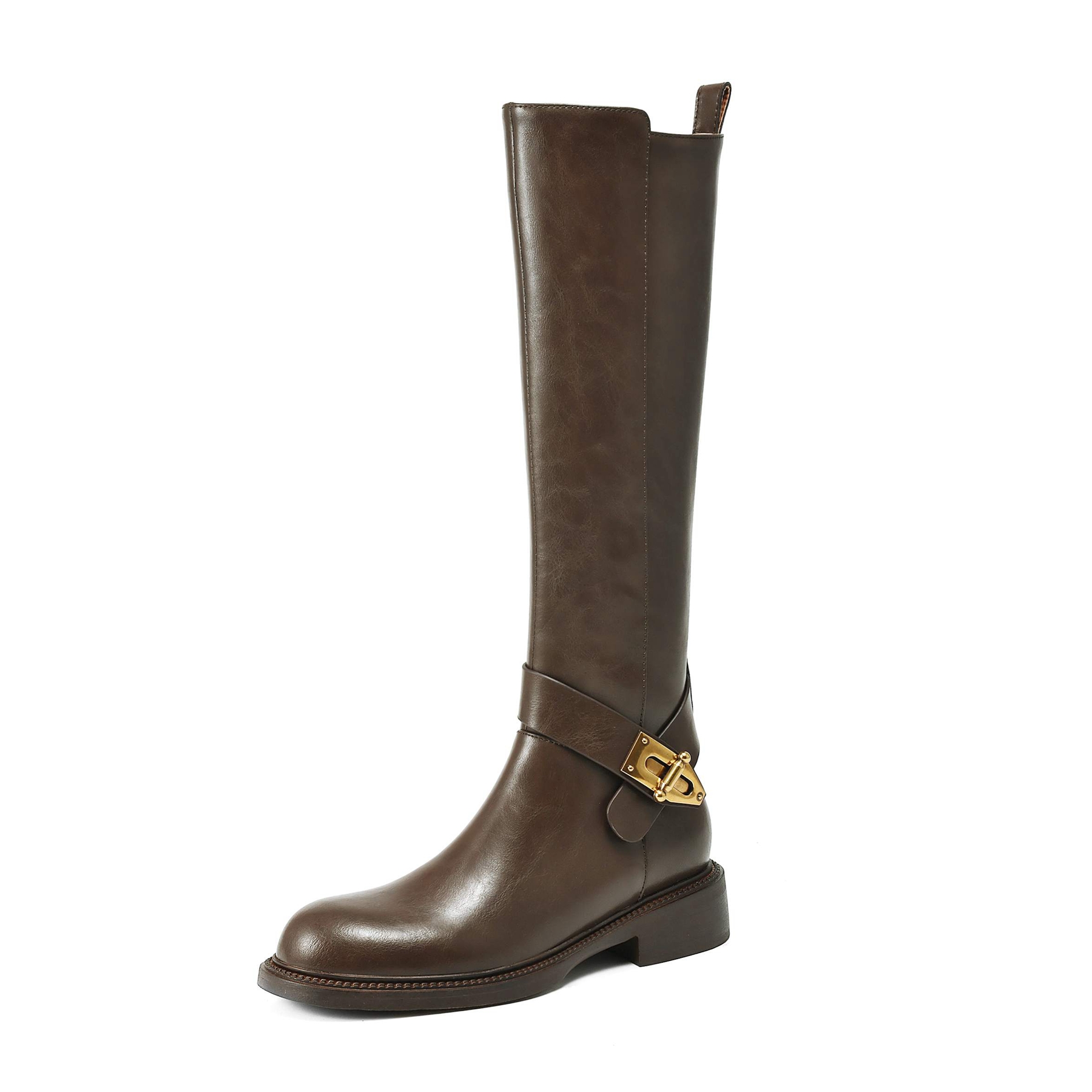 Krazing Pot Cow Leather Chunky Med Heels Retro Riding Boots Brand Winter Warm Zipper Concise Office Lady Casual Knee High Boots
