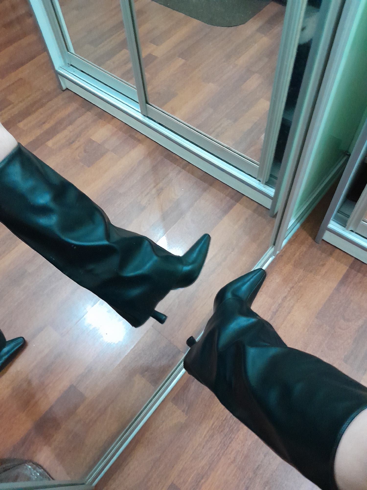 Сапоги по дизайну и качеству ОГОНЬ!!! Не помолись,качественно упаковки! Спасибо продавцу, ❤️ молодец!!! Берите не сомневайтесь. На 24,5 взяла 39. Плотненько сели, но больше я бы не хотела, разносят ещё. Каблучок не высокий, см. 6-7 и очень удобная колодка.