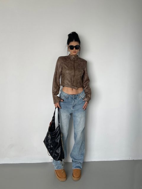 WOMENGAGA Stand Collar Jacket Leather Short Coat Women Autumn New Straight Tube Slim Short Motorcycle Jacket Korean Sweet D8FN