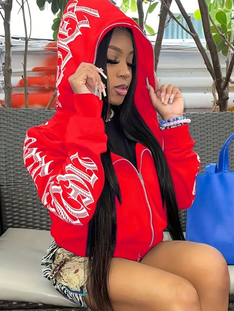 Letter Print Long Sleeve Zip Up Hoodies, Cyber Y2K Gothic Punk Sweatshirt, Women’s Clothing