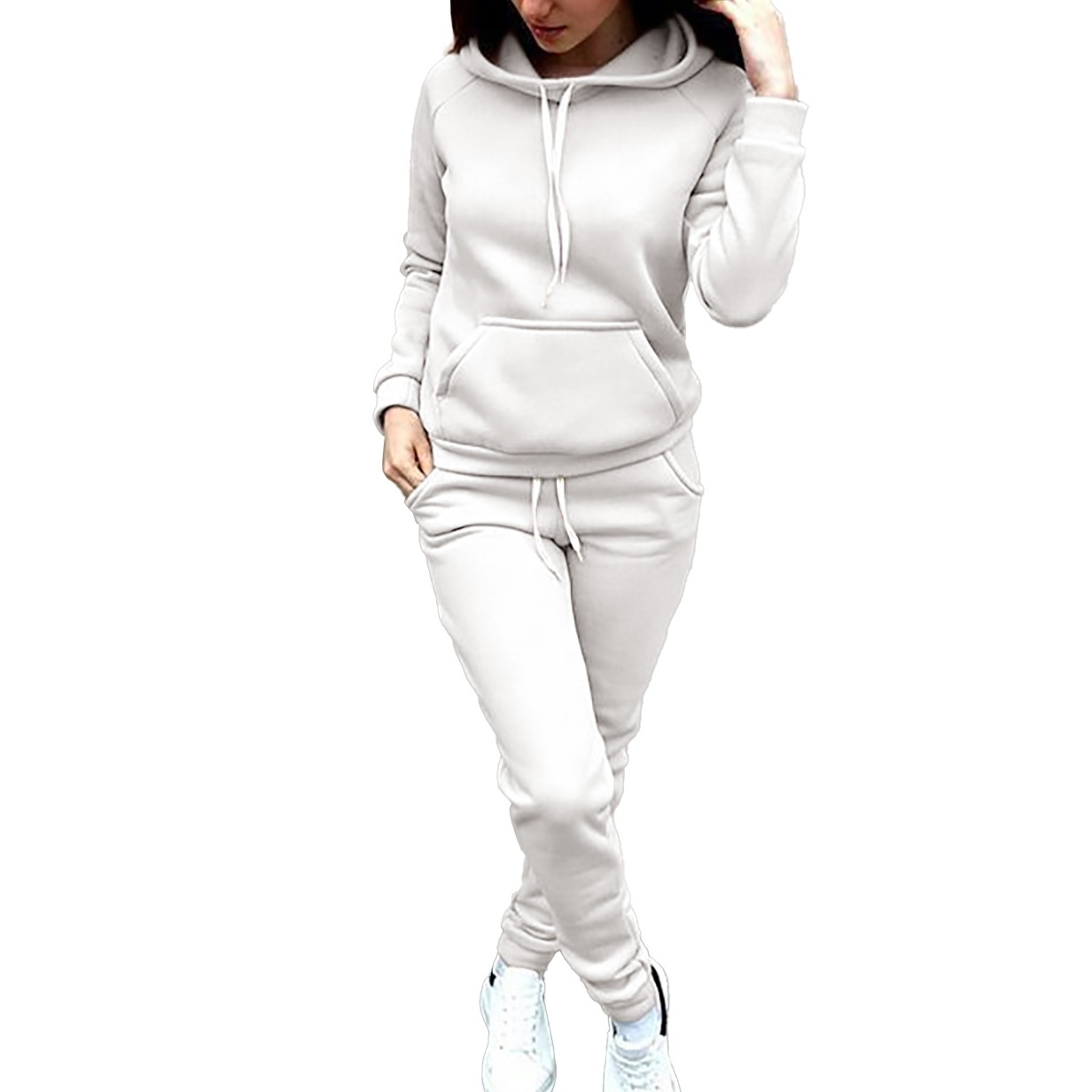 Ladies Sweat Suit Solid Color Hooded Sweatshirt And Pant Tracksuit Women Jogging Sport Set Lounge Wear Autumn Winter Clothes