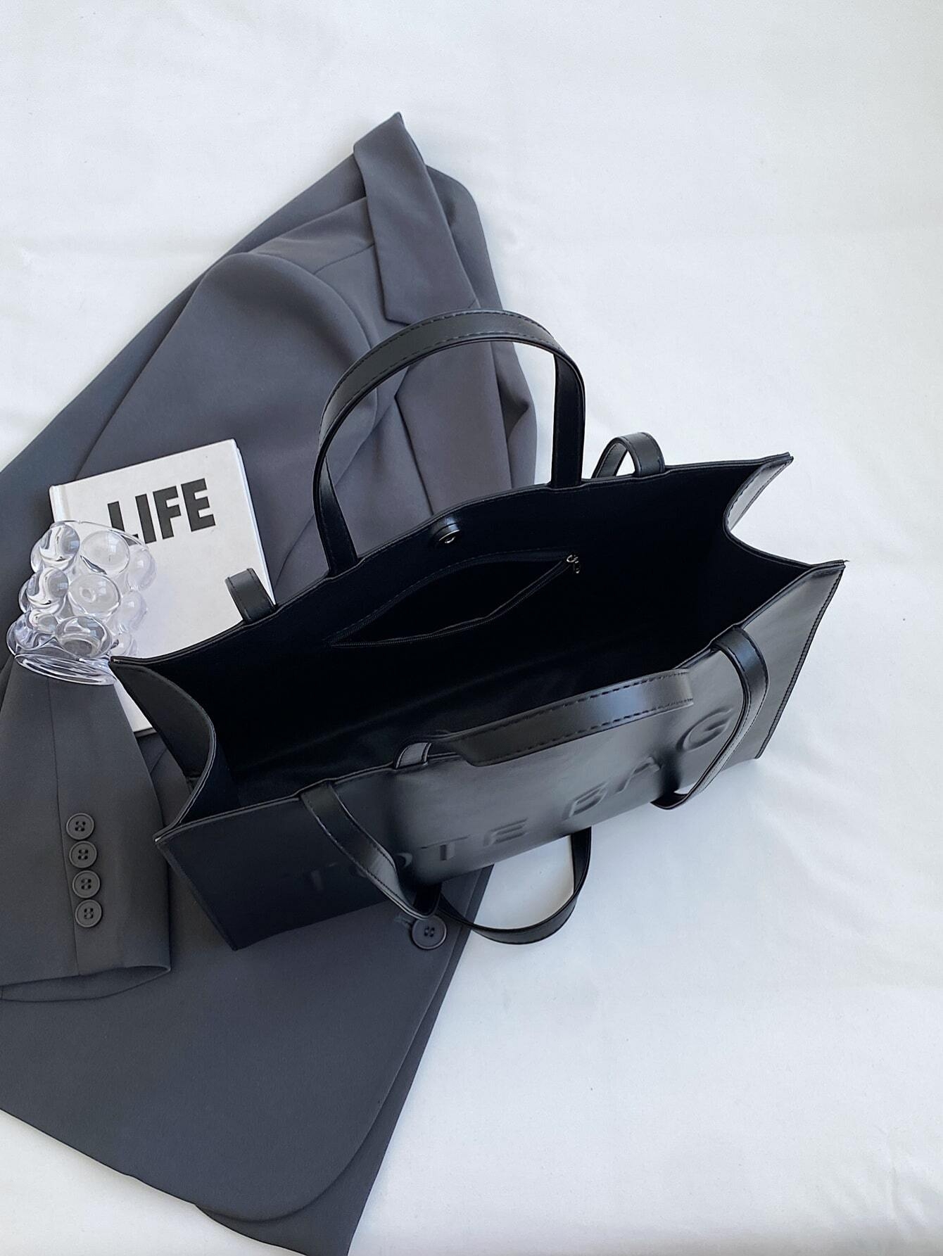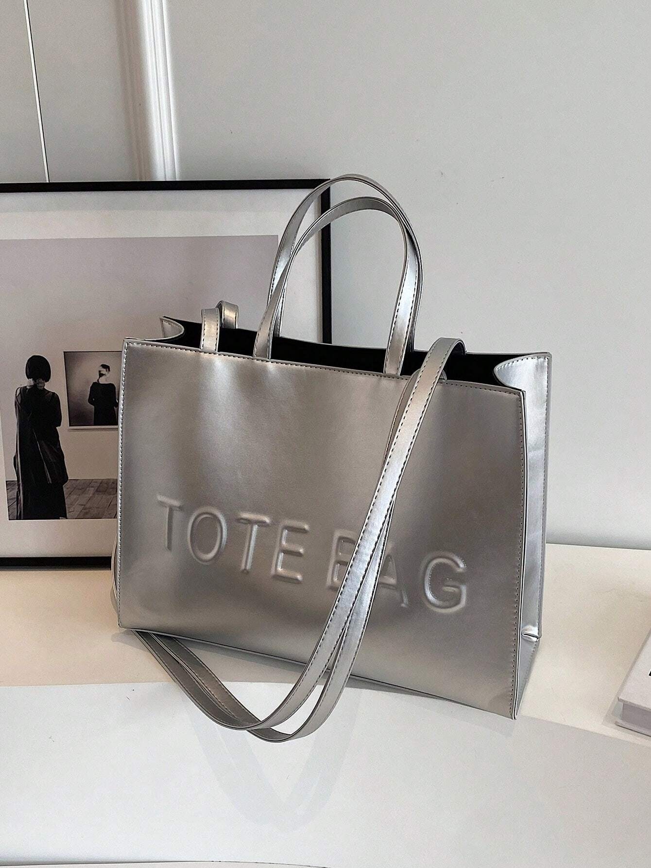 Large Capacity Fashionable Tote Bag With Letter Print Fashion Solid Color Simple Crossbody Bag Women Casual Handbag Shoulder Bag