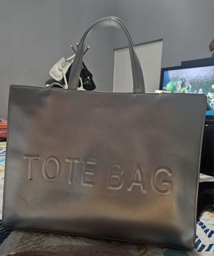 hermoso bolso plateado, tonos mate, elegante imitacion piel. amplia para almacenar.