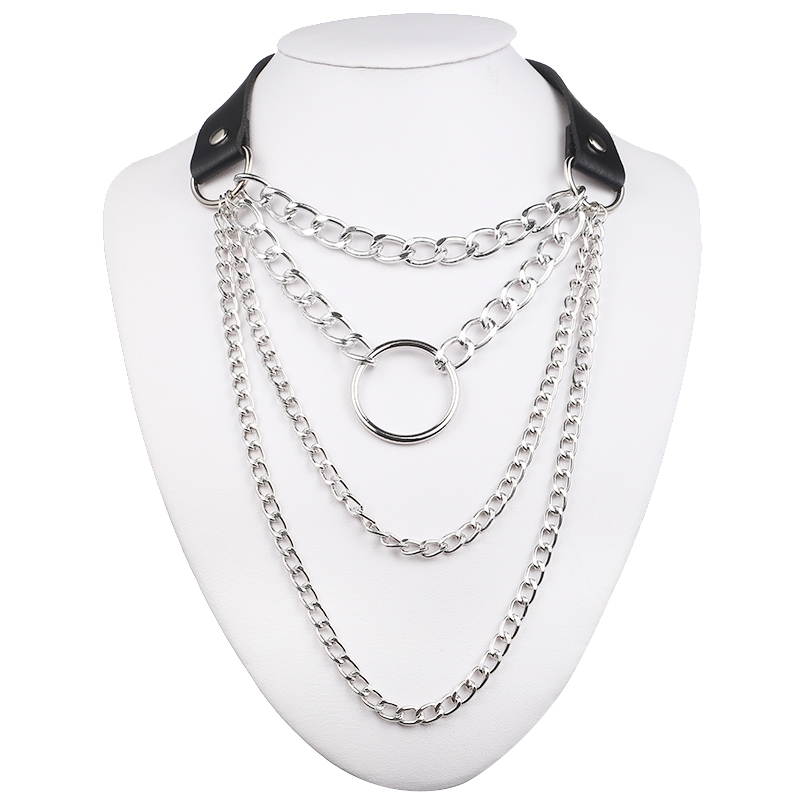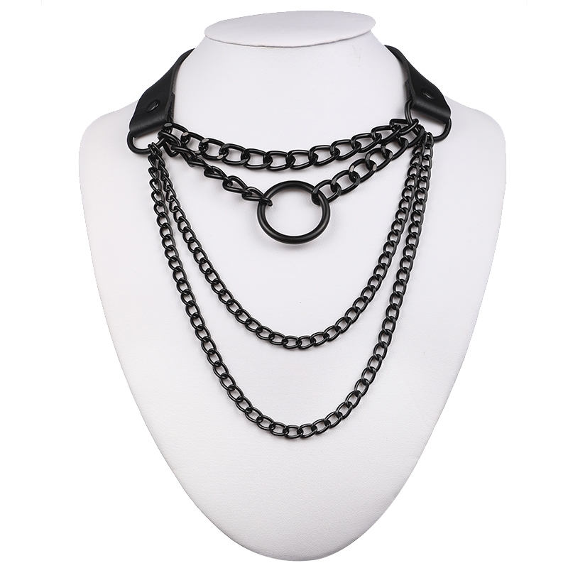 Layered Chain necklace Punk choker collar goth pendant necklace women black leather emo gothic jewelry