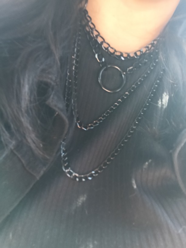 3 reviews for Layered Chain necklace Punk choker collar goth pendant necklace women black leather emo gothic jewelry