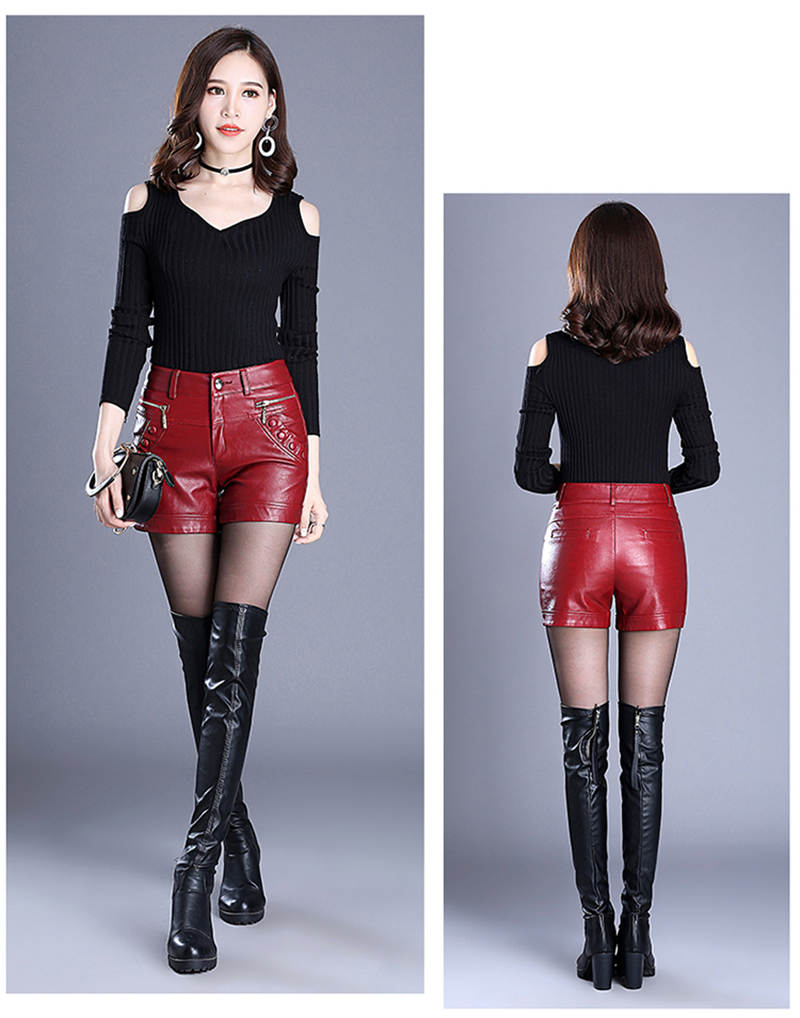Leather Shorts Women Autumn Winter PU Sexy Shorts High Waist Casual Straight Slim High Waist Short Women Shorts Large Size