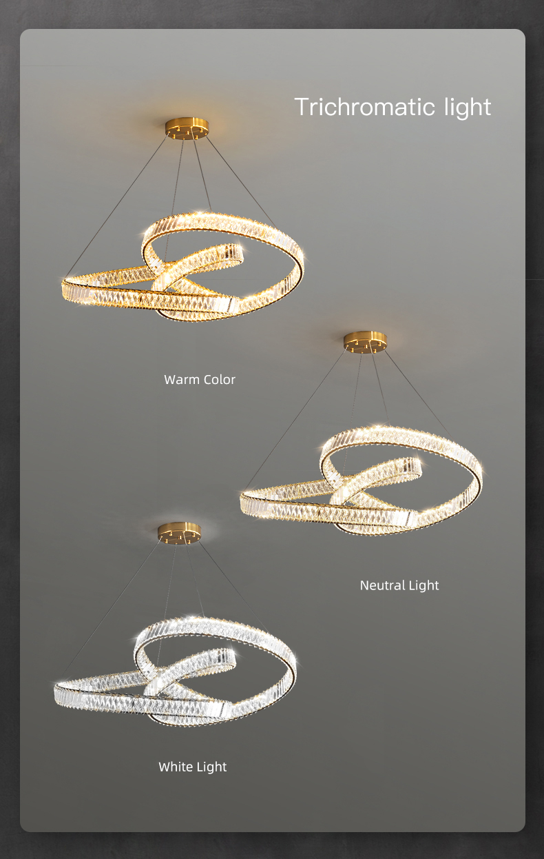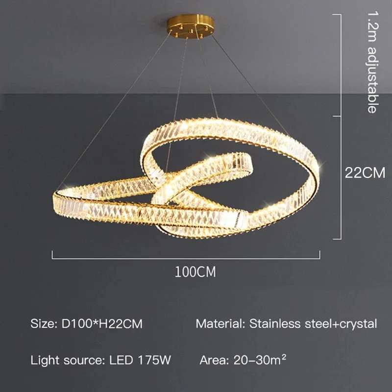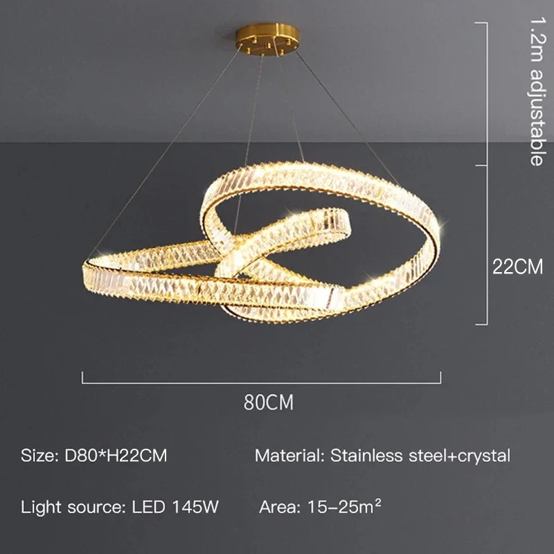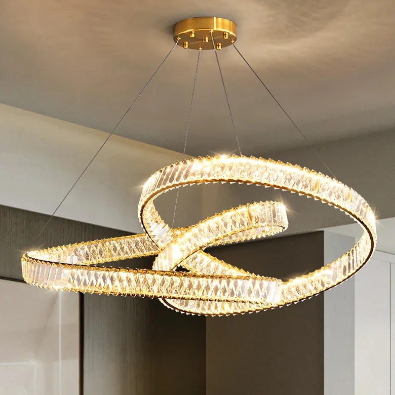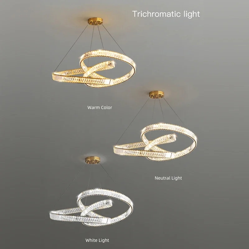 2024 Dining Room Lustre Remote Control Dimmable Pendant Lights Luxury K9 Crystal Hang Chandelier Wave Steel Lamp Fixtures