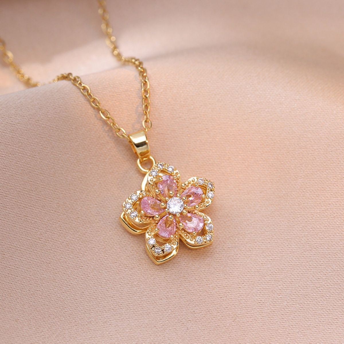2 reviews for Light Luxury Shiny Zircon Rotatable Flower Pendant Necklace For Women Stainless Steel Romantic Spin Floral Plant Choker Jewelry