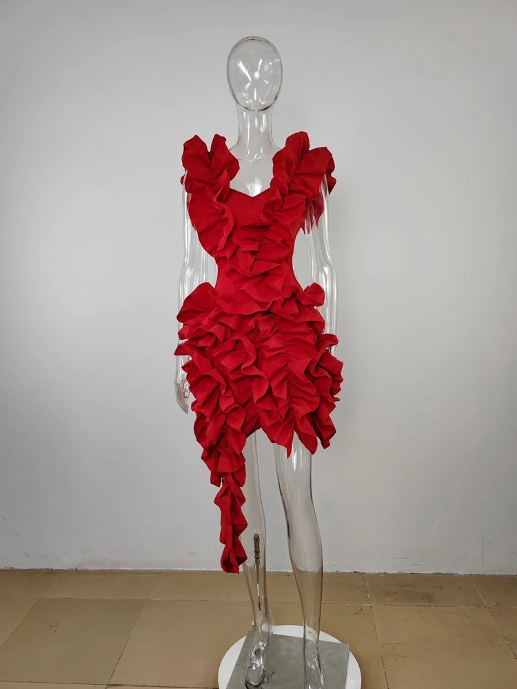 Be the first to review “Luxury Red Sexy Ruffles Women Party Prom Dress 2025 Runway Fashion Sleeveless Ruched Backless Club Evening Cocktail Dresses Y2K” Cancel reply