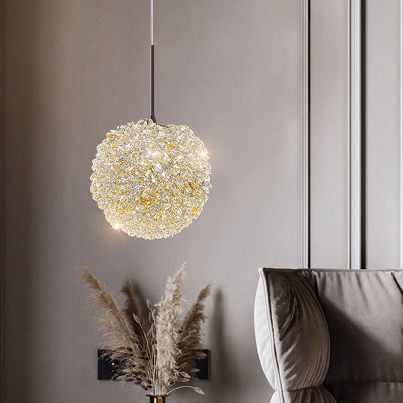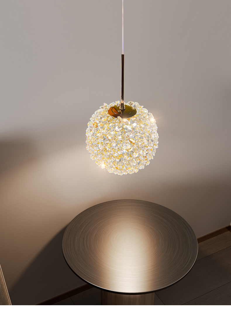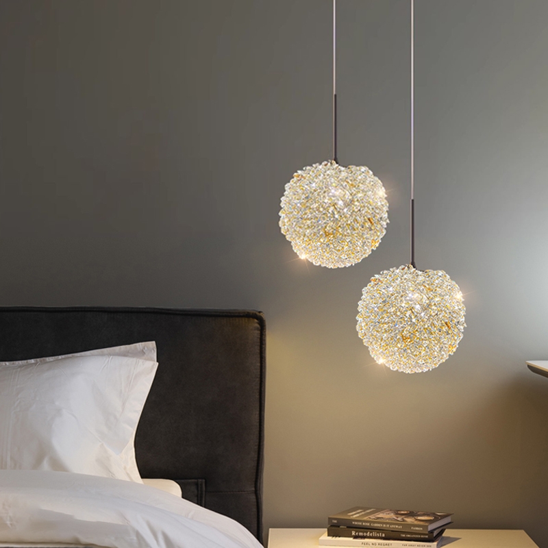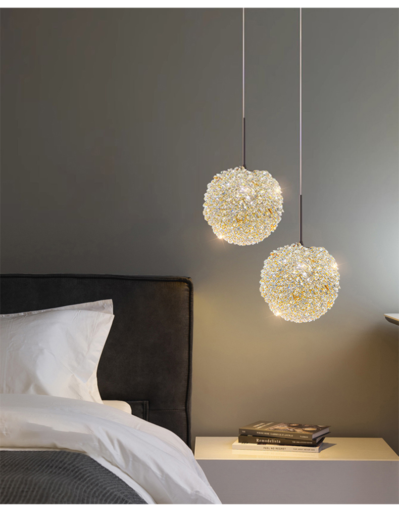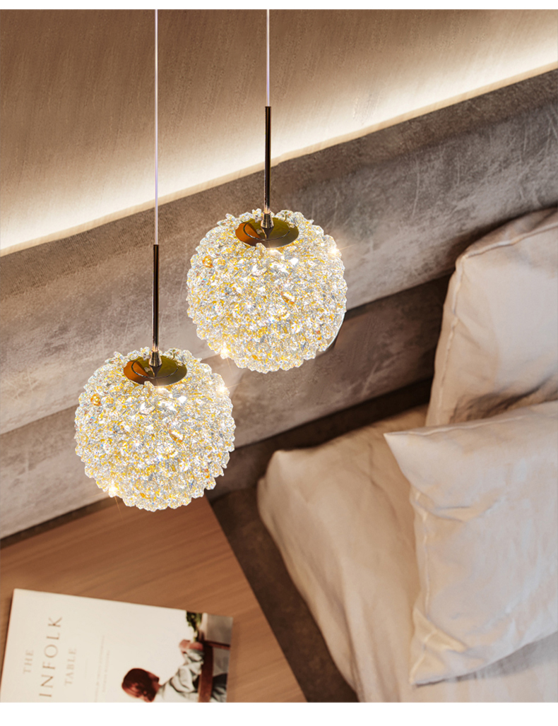 Luxury Round Ball Pendant Lamp Bedhead Warm Pendant Light Romantic Crystal Hanging Lamp for Dining Room Long Line Decor Fixture