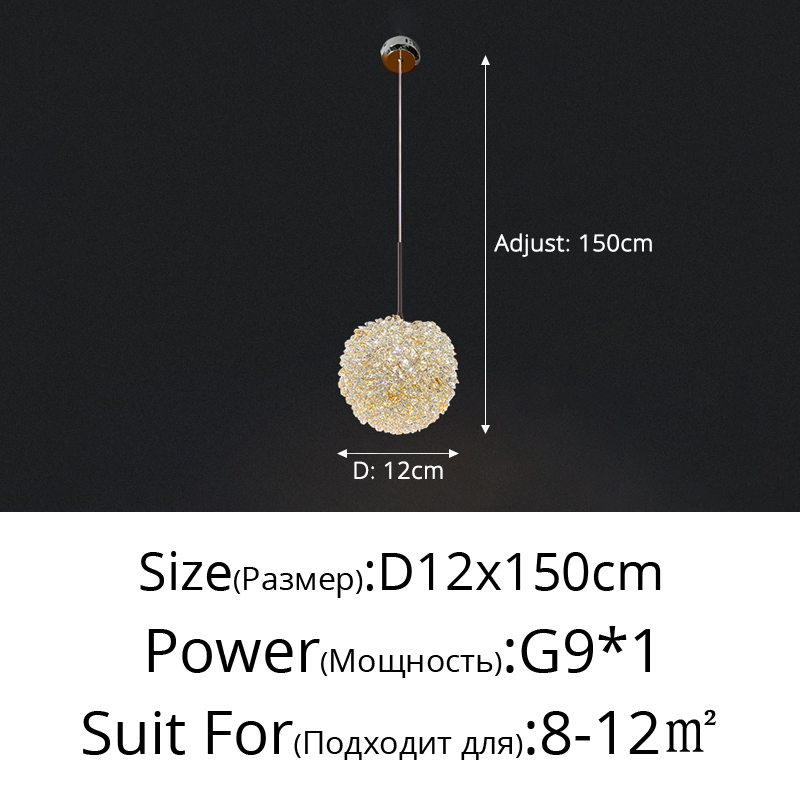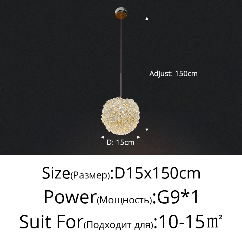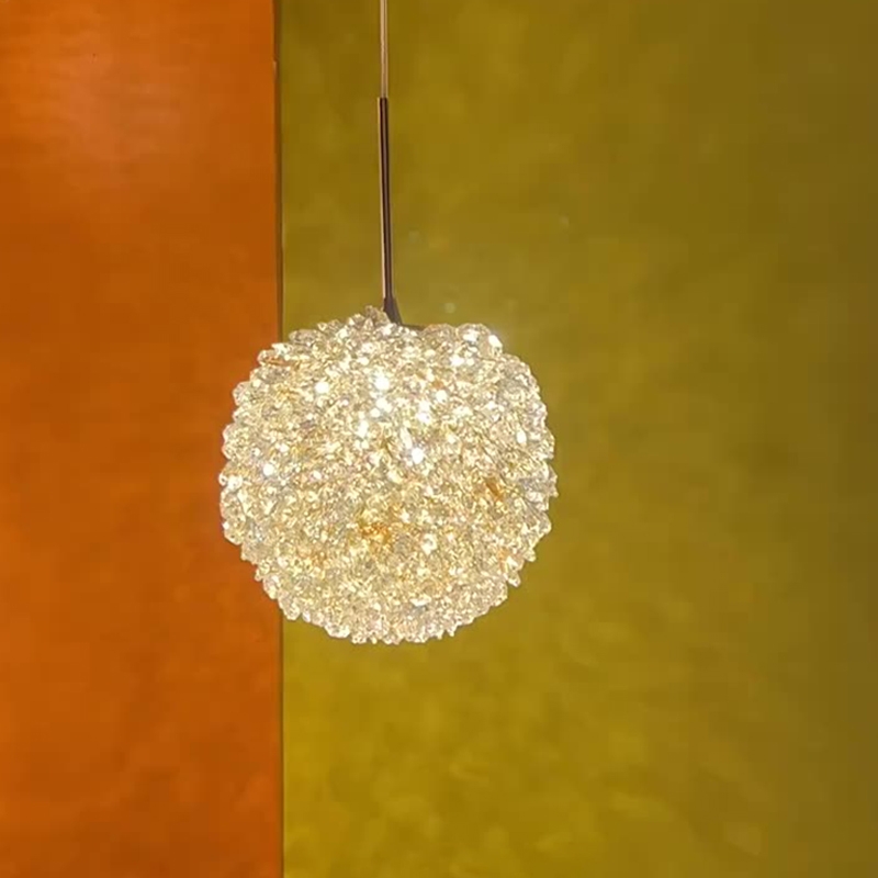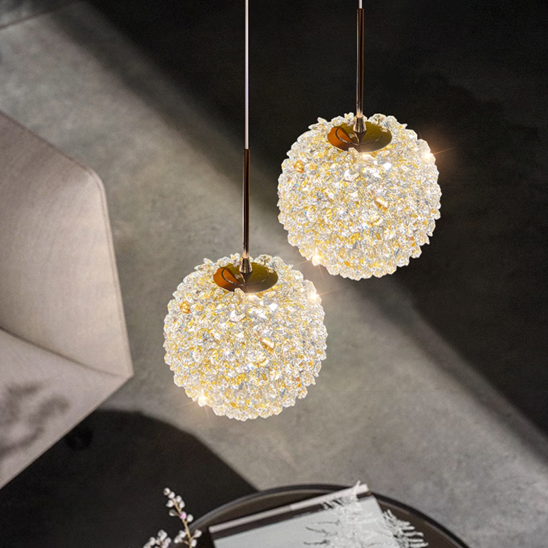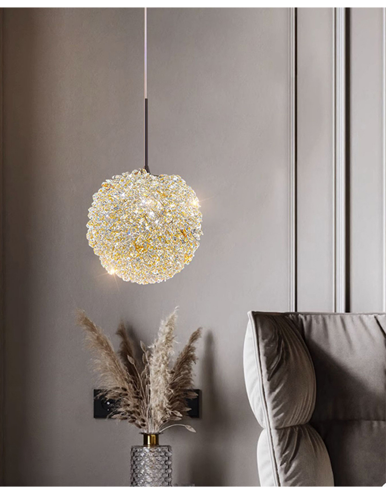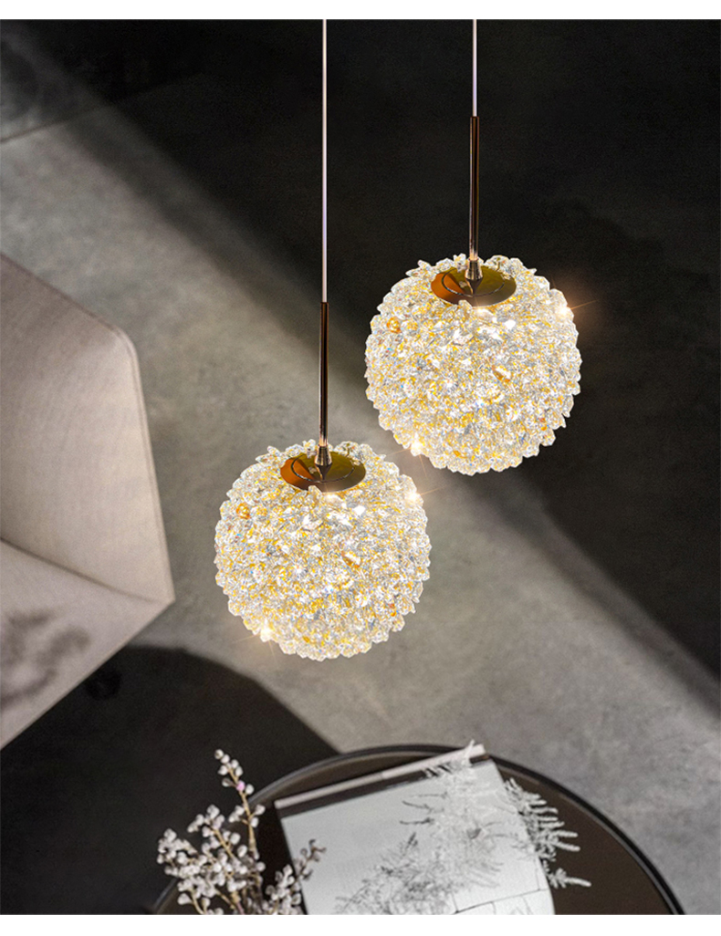 Luxury Round Ball Pendant Lamp Bedhead Warm Pendant Light Romantic Crystal Hanging Lamp for Dining Room Long Line Decor Fixture