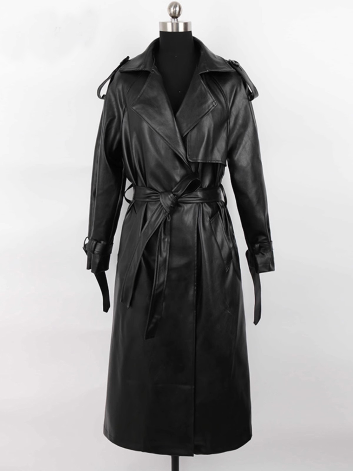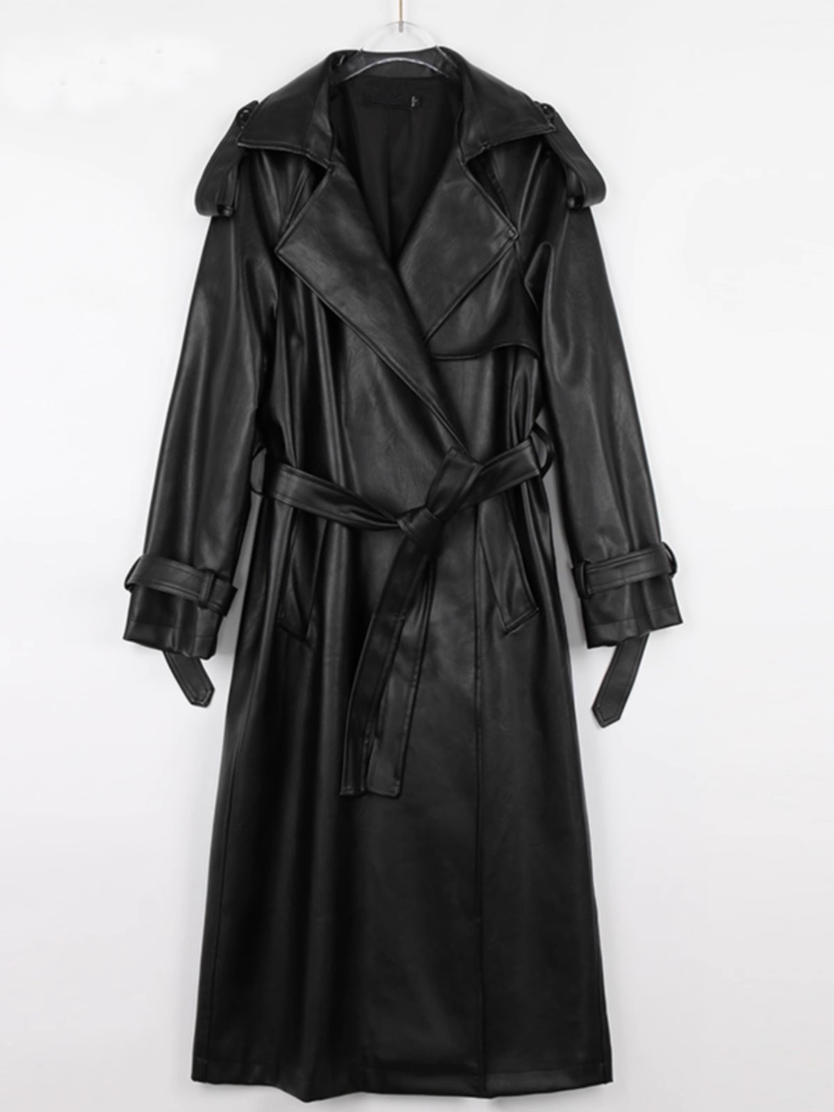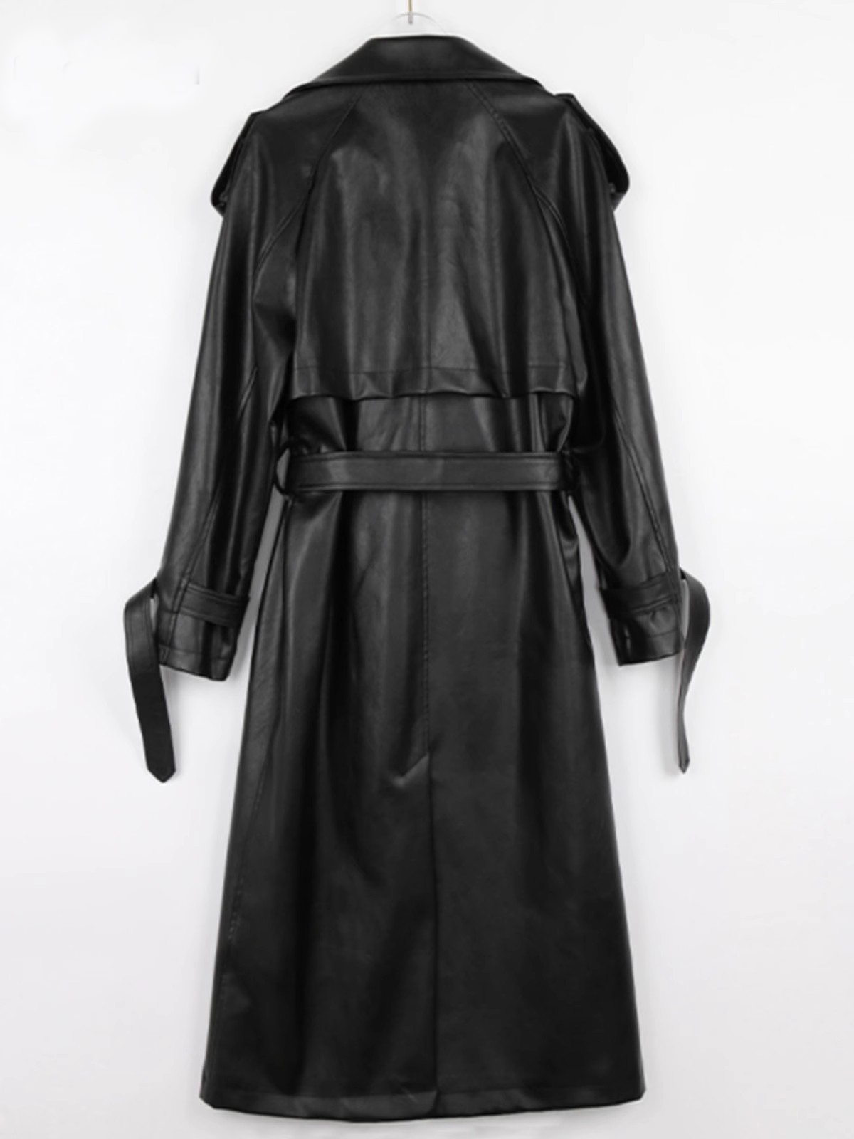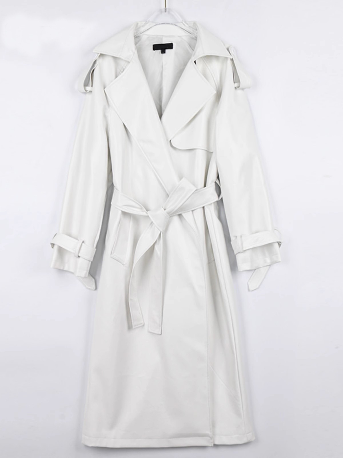 Mauroicardi Spring Autumn Black Long Soft Pu Leather Trench Coat for Women Sashes Loose Casual White Waterproof Overcoat 2025