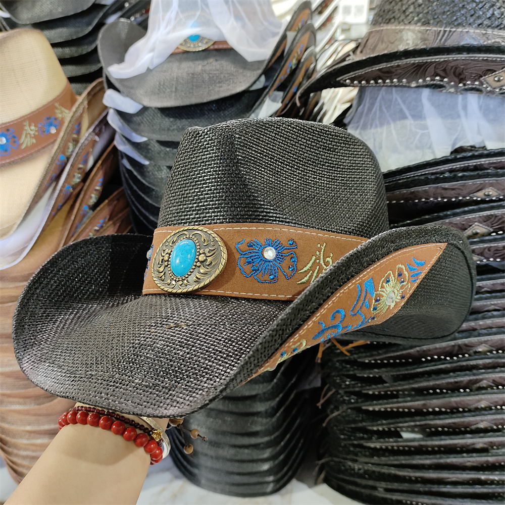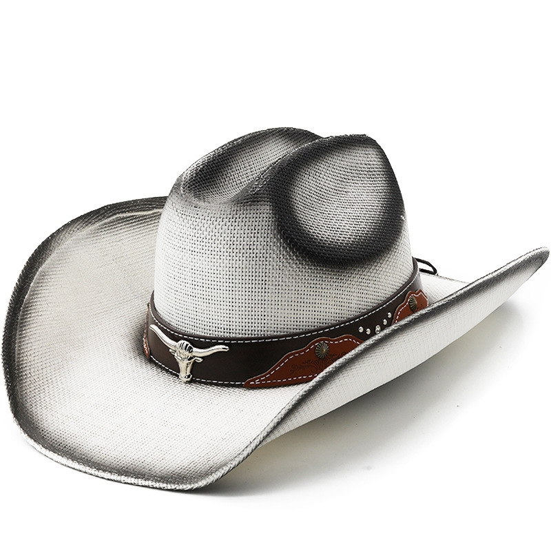 Men’s Cardboard Straw Hat Large Brim Western Cowboy Straw Hat for Men and Women Outdoor Summer Sun Hat Double Concave Cowboy Hat