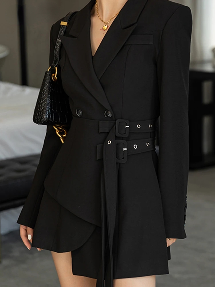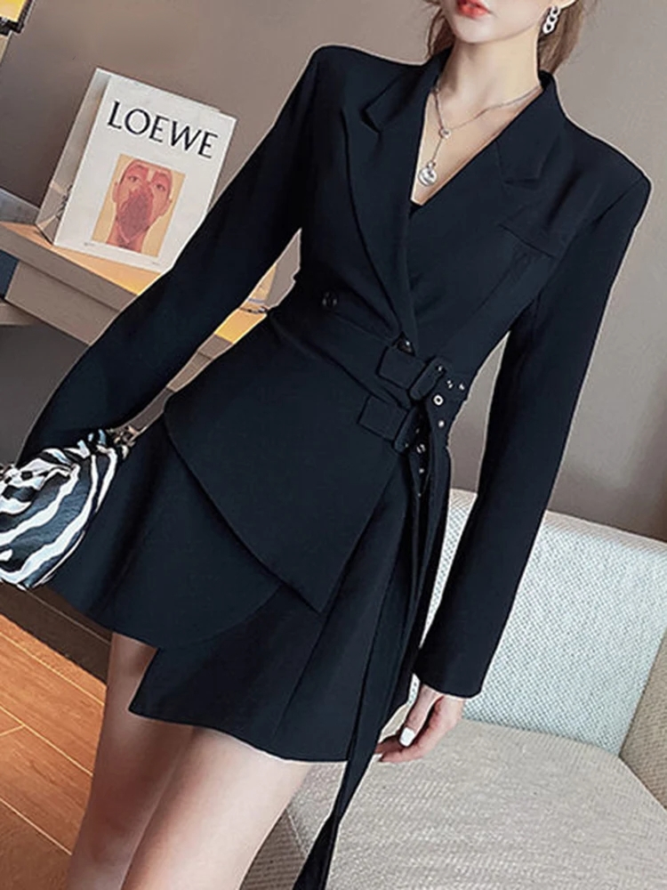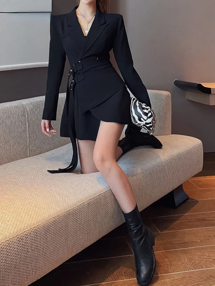 Mini Party Blazer Dress Women Korean One-piece Office Lady Elegant Dress Chic Sashes Design Long Sleeve Clothes Winter