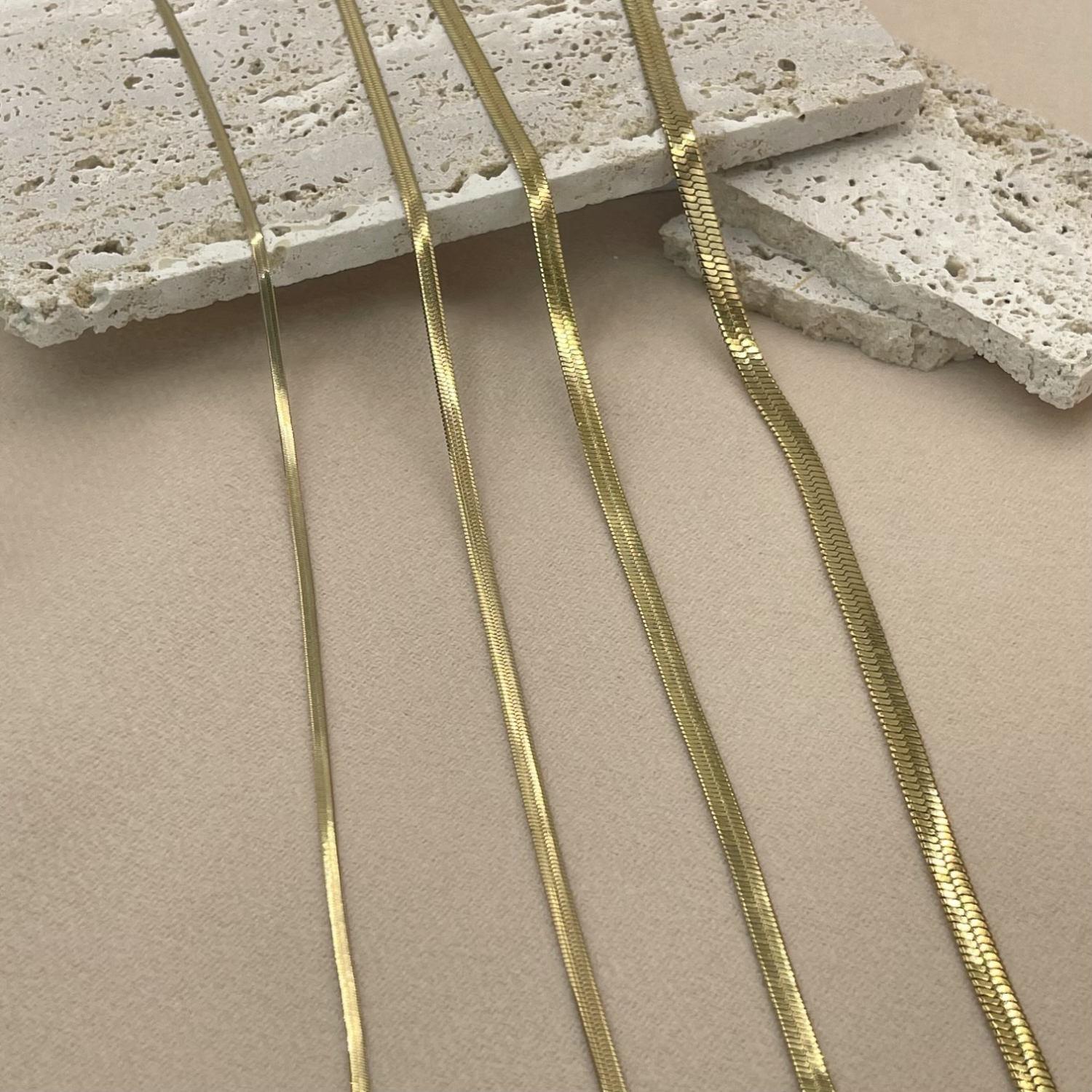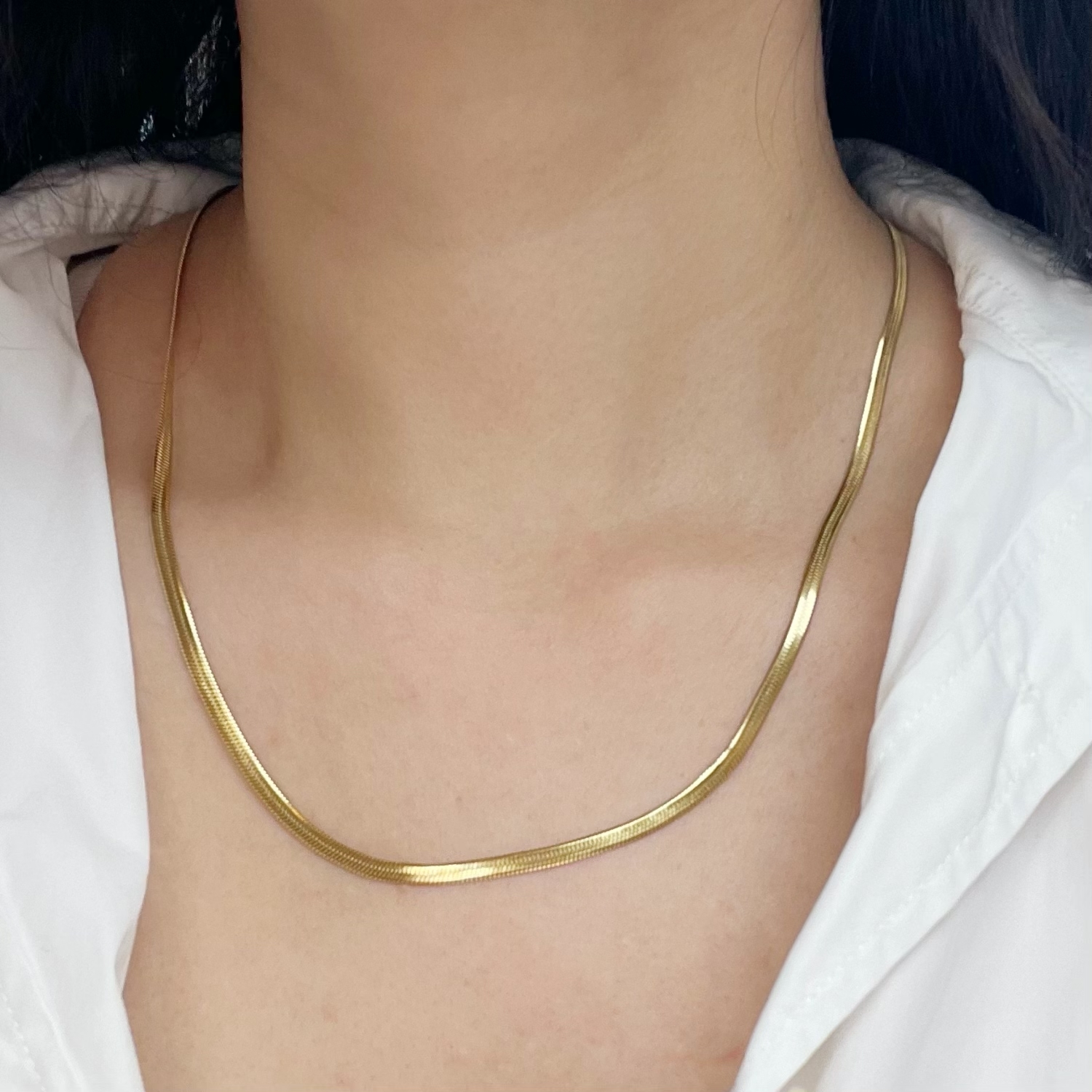Minimalist Unisex Snake Chain Necklace Choker Stainless Steel Herringbone Gold Color Fashion Jewelry Gift For Her Women and Men