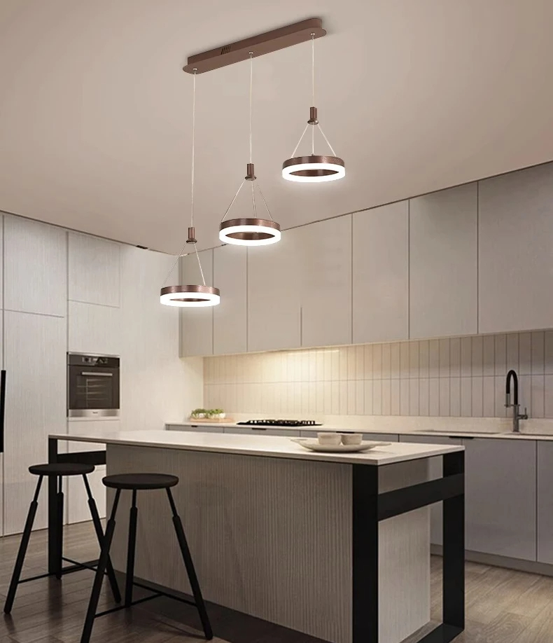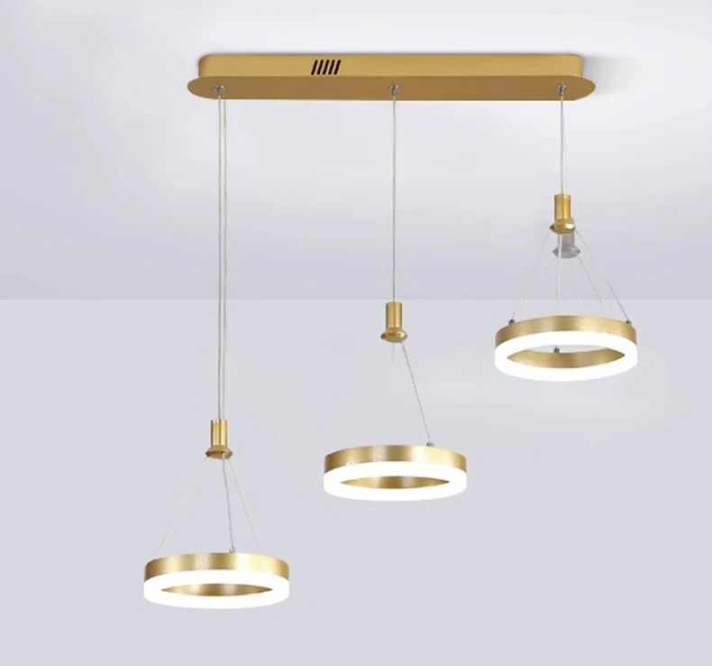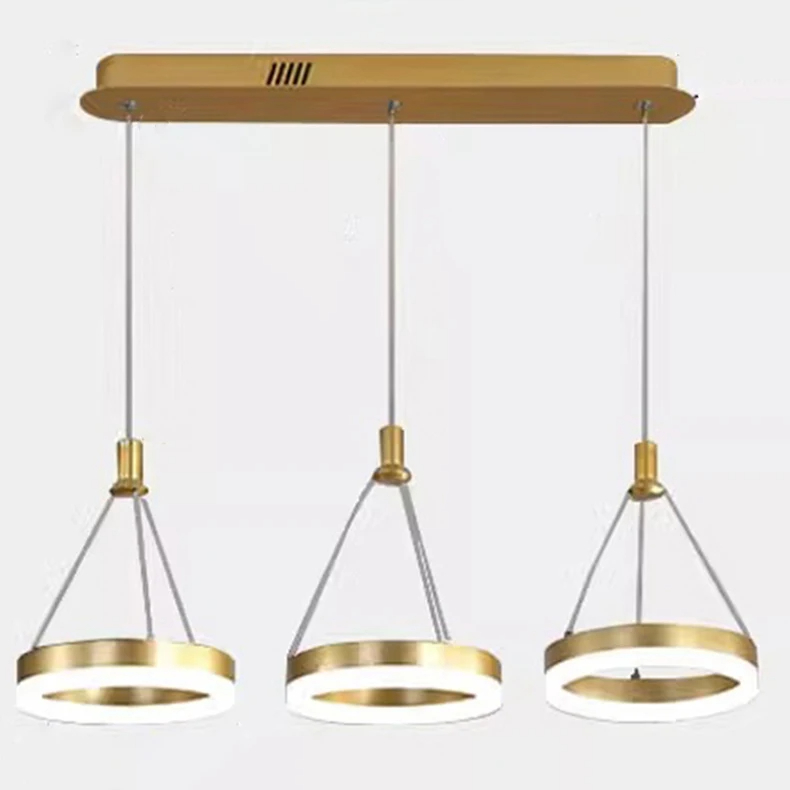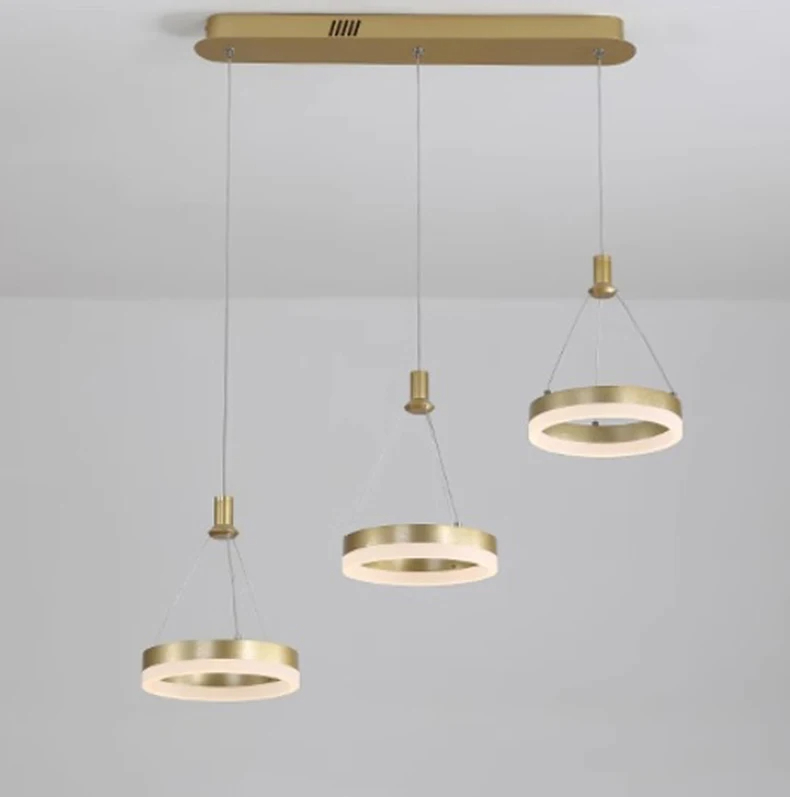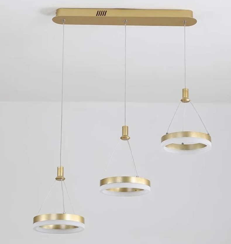 These golden ring chandeliers are amazing The warm glow and sleek design make my dining area feel like a fancy bistro So chic