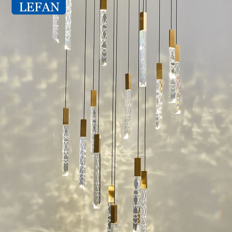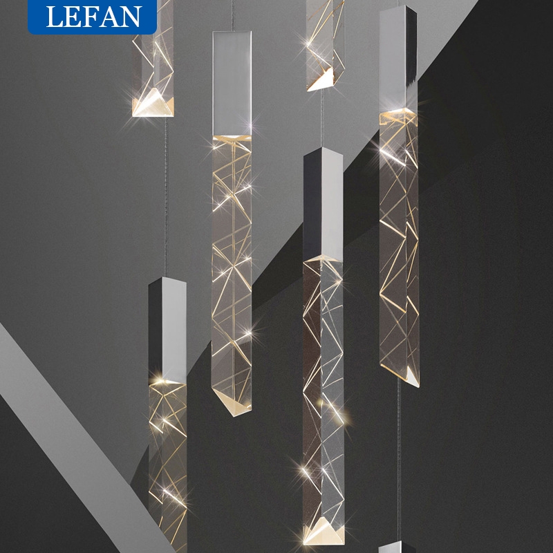 Modern LED Chandelier lights K9 Crystal Chrome Duplex Stair Loft Pendant Lamp Living Room Hotel Ceiling Hanging Light Luxury