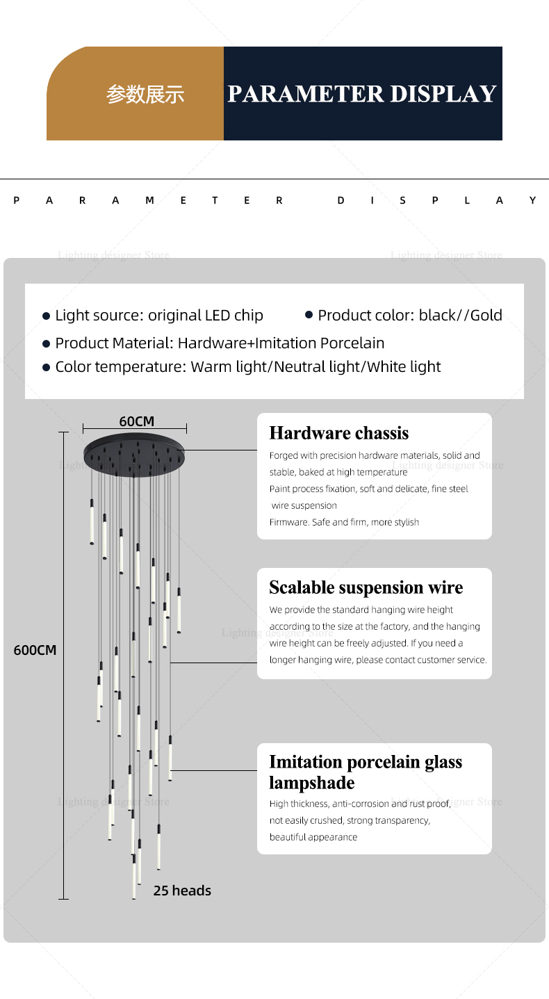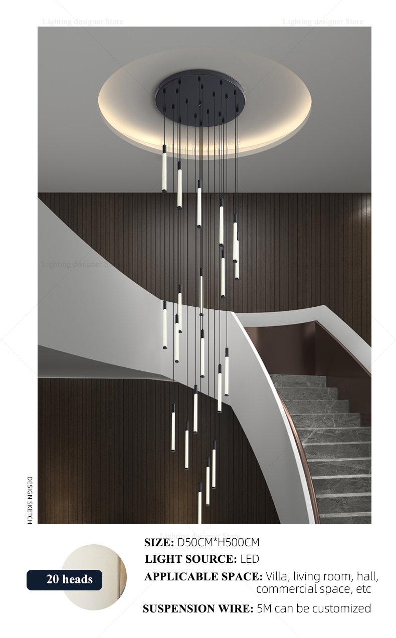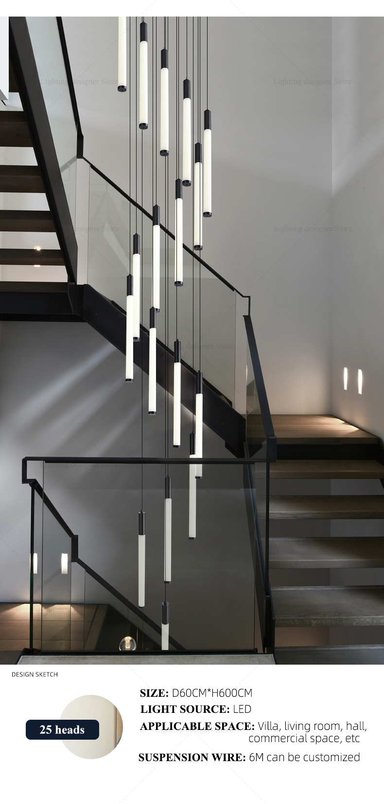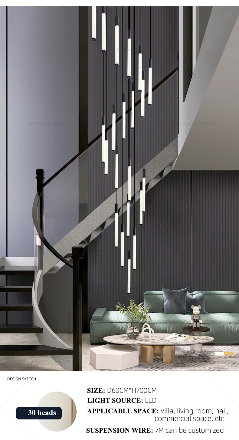 Modern Lighting Long Staircase Pendant Light Ceiling Chandelier hanging lights Stair Chandelier