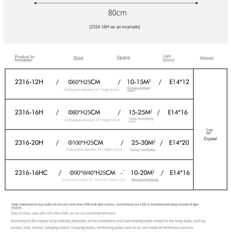 long 100cm, Long 80cm, round 100cm, round 60cm, round 80cm