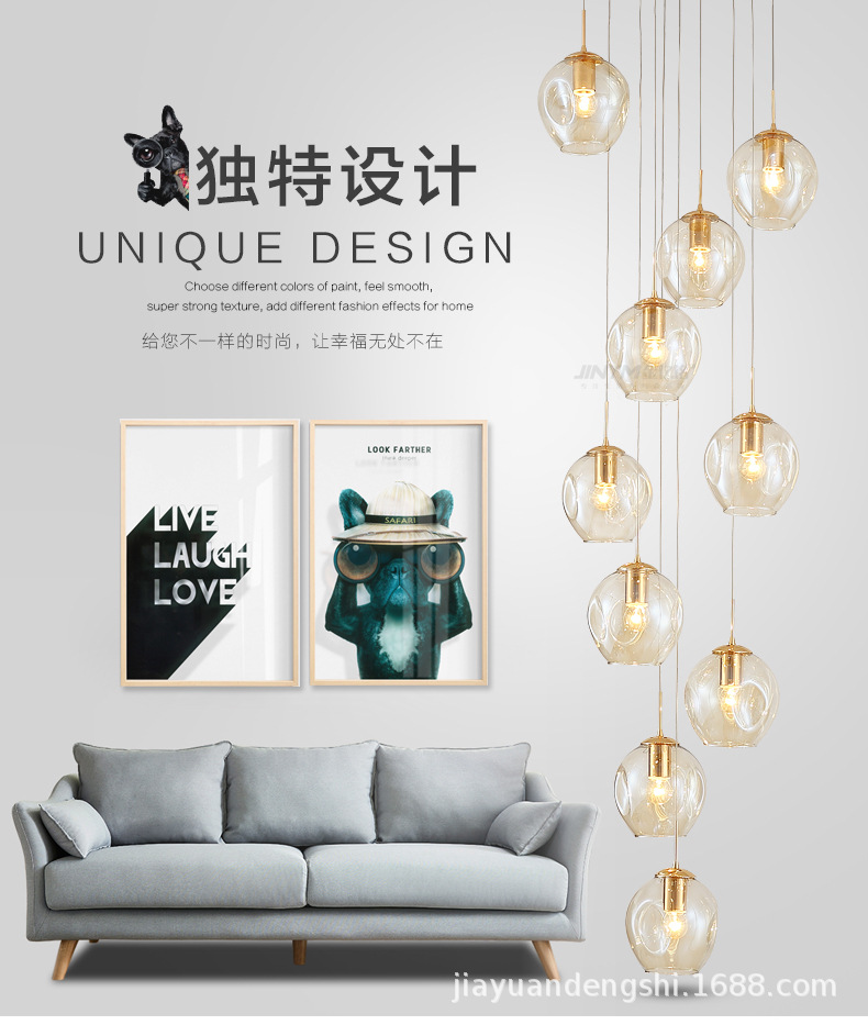 Modern minimalist ceiling long chandelier loft villa light luxury loft apartment living room large chandelier