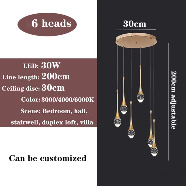 6 heads,Chassis diameter 30cm, total length of lamp+line 200cm