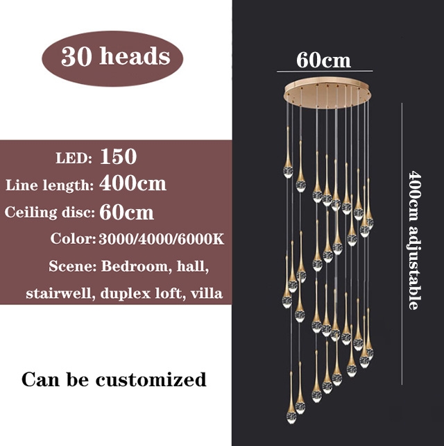 30 heads,Chassis diameter 60cm, total length of lamp+line 400cm