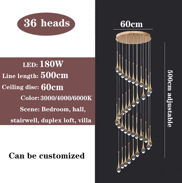 36 heads,Chassis diameter 60cm, total length of lamp+line 500cm