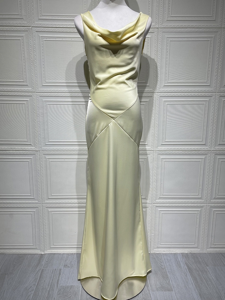 Mozision Satin Backless Draped Sexy Maxi Dress Women Fashion Cowl Neck Sleeveless High Waist Club Party Long Dress Female New