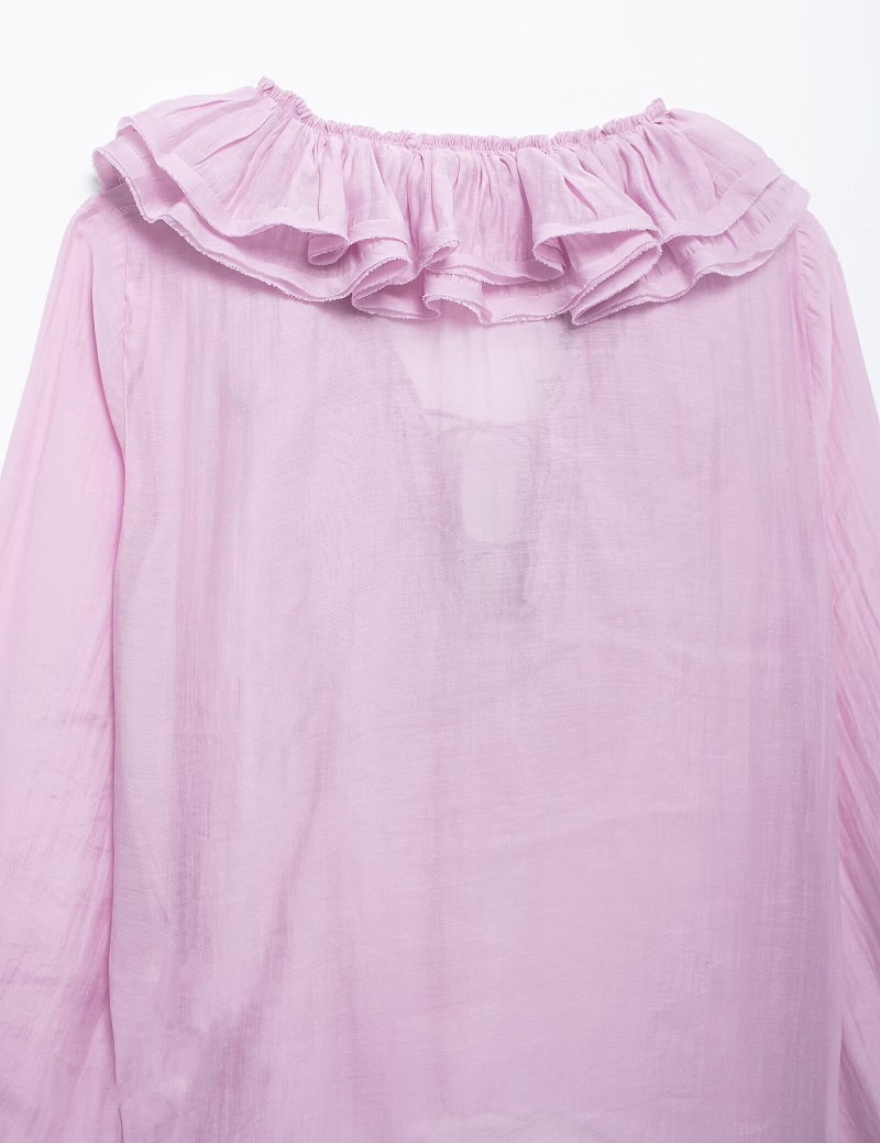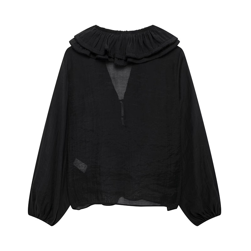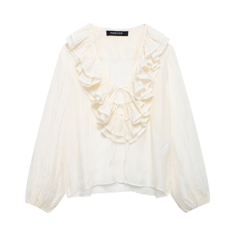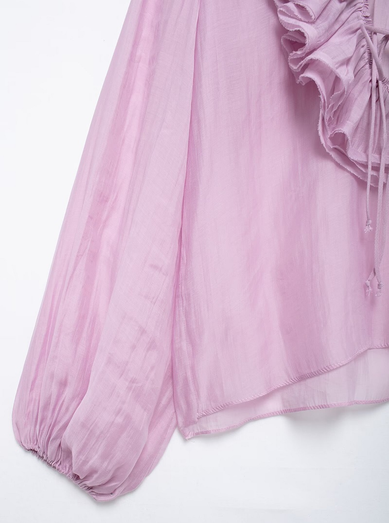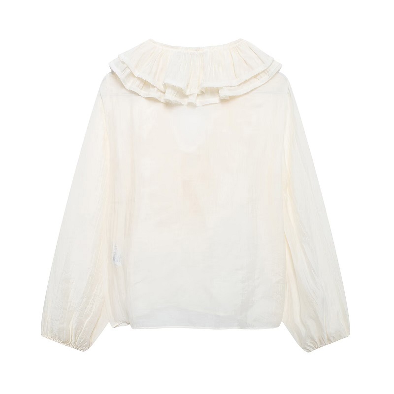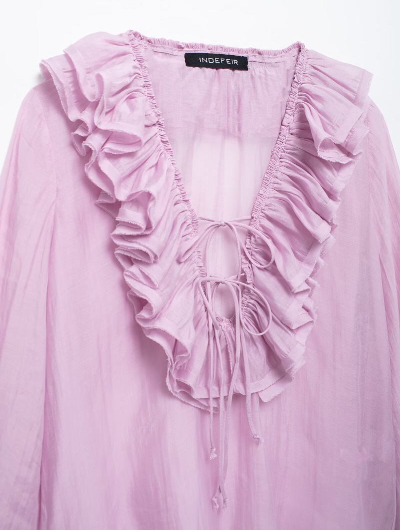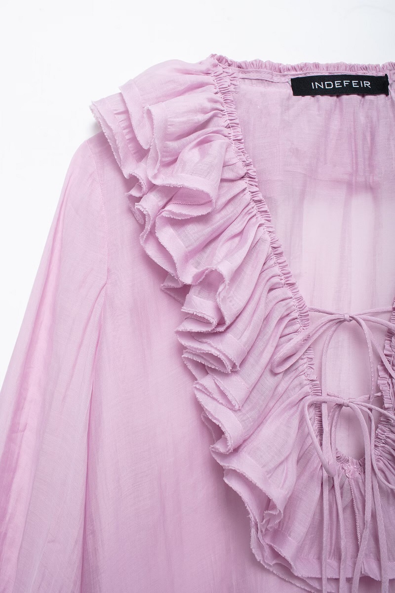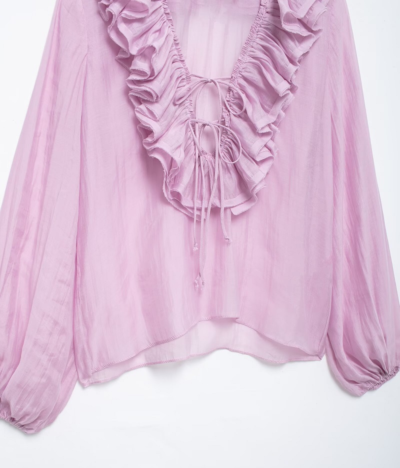 MUJER 2025 Ruffle Blouses for Women Semi Sheer Casual Blouse Woman Pleated Summer Shirts and Blouses Women Long Sleeve Women Top
