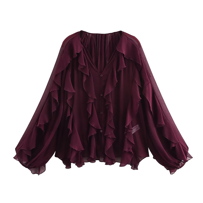 MUJER Ruffle Womens Blouses Semi Sheer Casual Blouses Woman Spring Fairy Shirts and Blouses for Lady Long Sleeve Tops Woman 2025