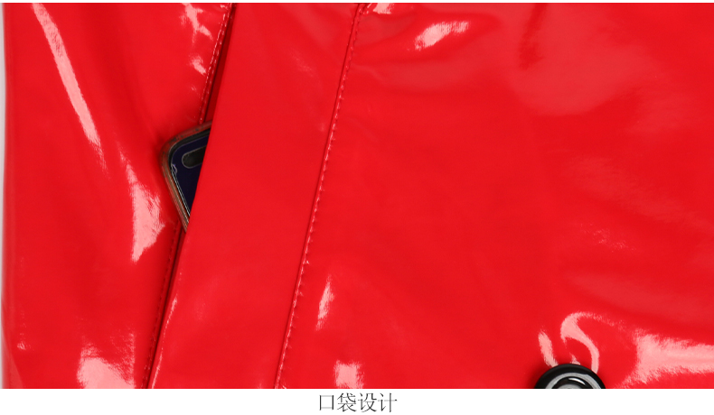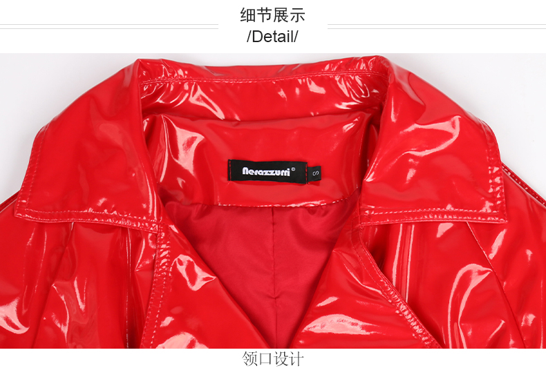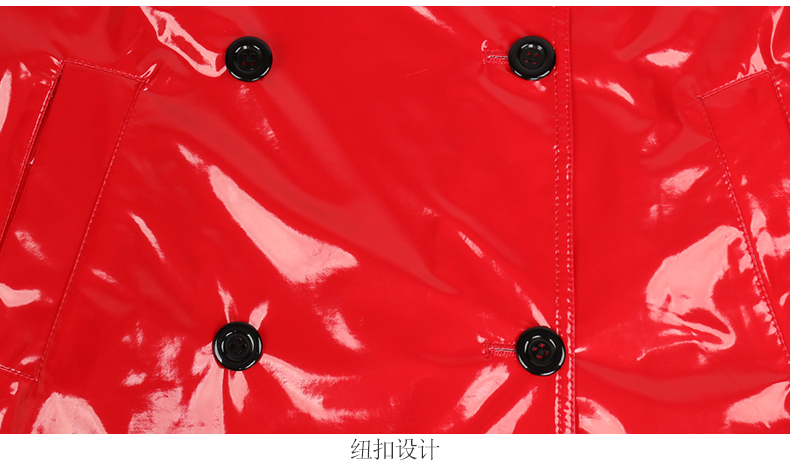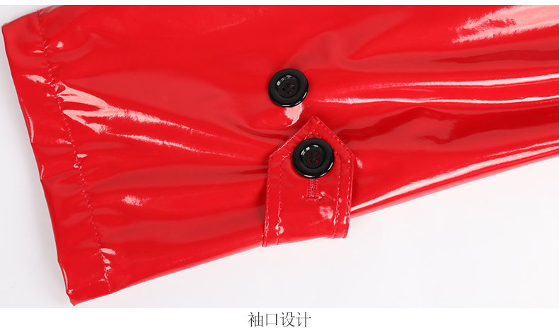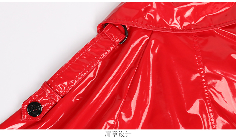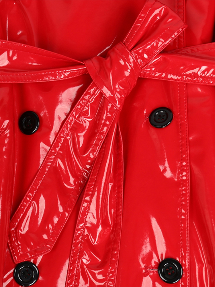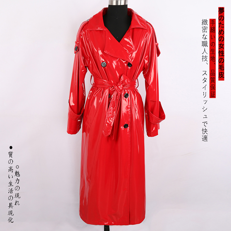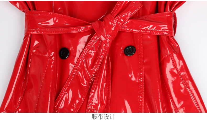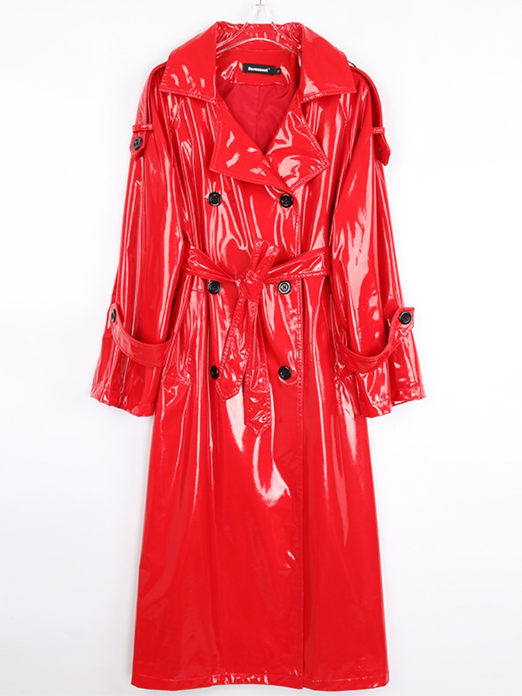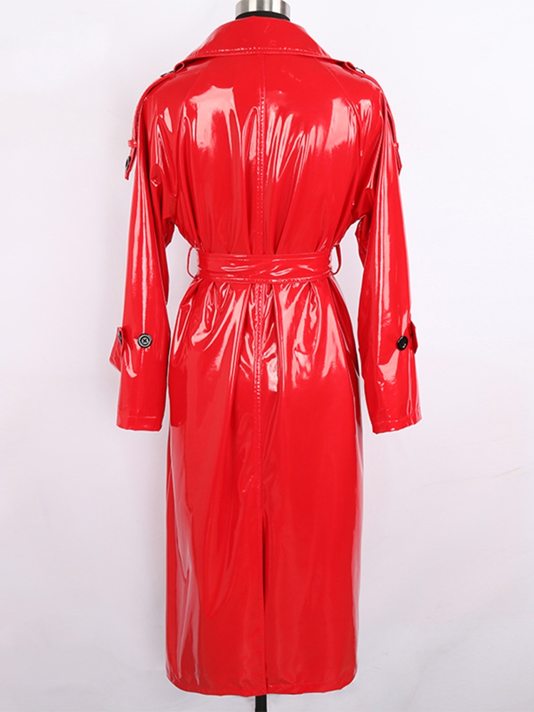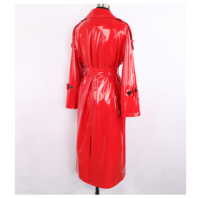 Nerazzurri Autumn Long Red Waterproof Shiny Reflective Patent Leather Trench Coat for Women Double Breasted Plus Size Fashion