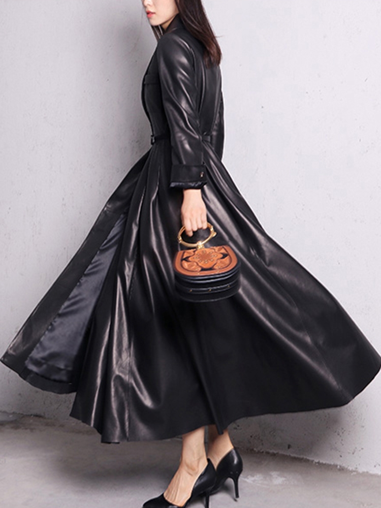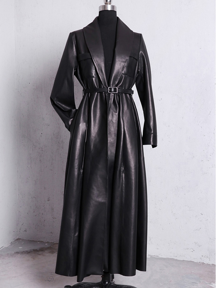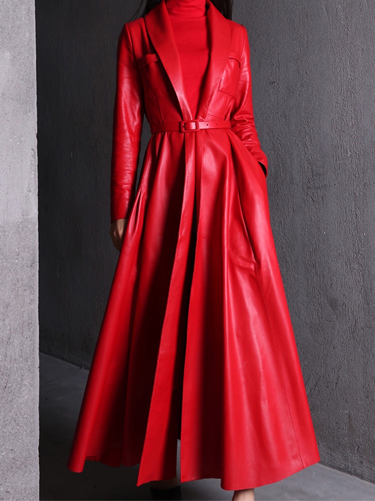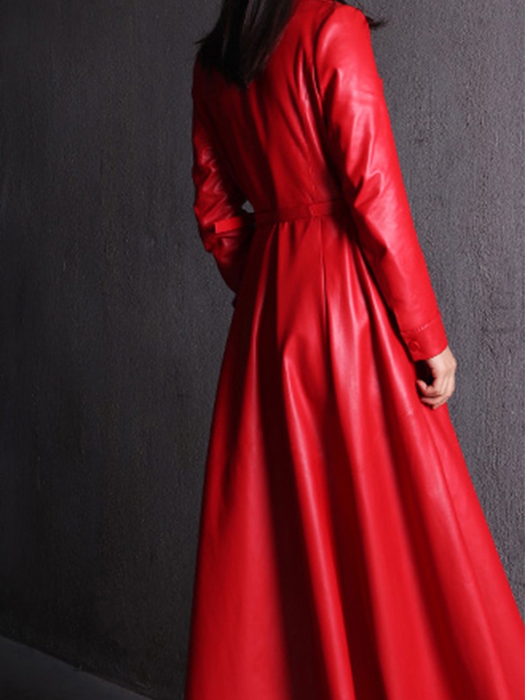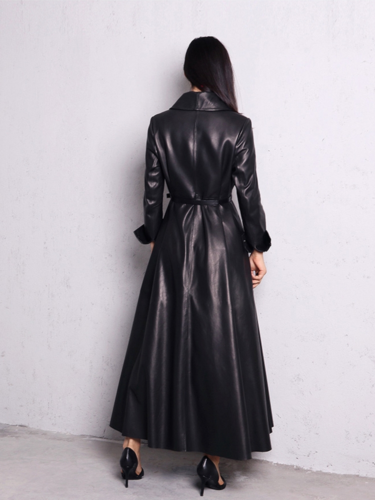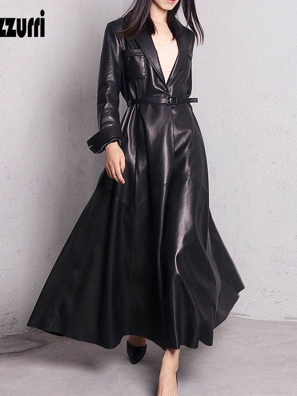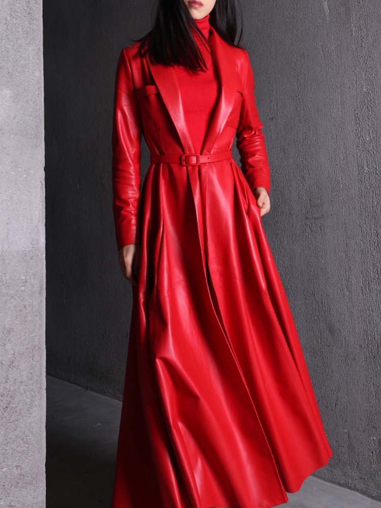 Nerazzurri High Quality Red Black Maxi Pu Leather Trench Coat for Women Extra Long Skirted Elegant Overcoat Fashion 5xl 6xl 7xl