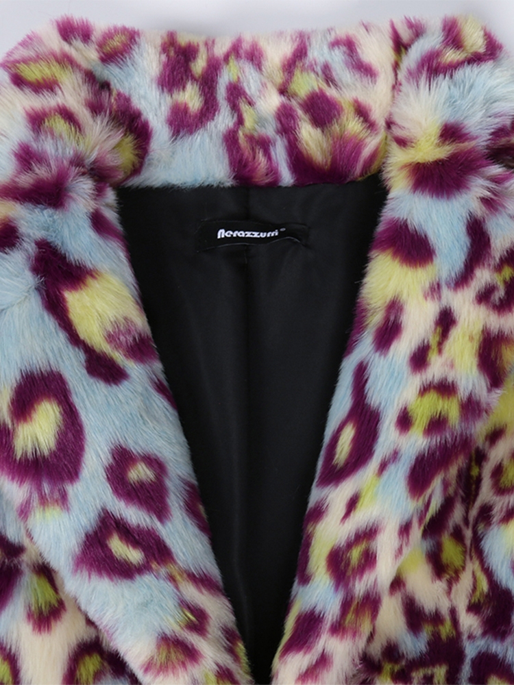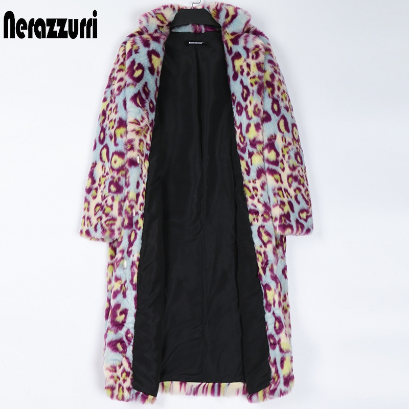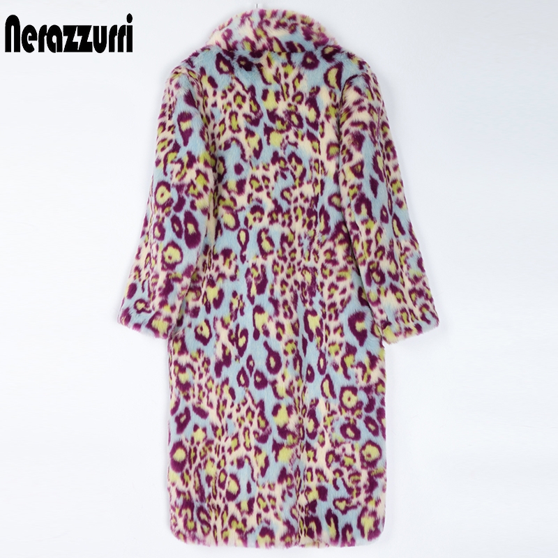 Nerazzurri Multicolor Long Colorful Leopard Print Faux Fur Coat Women Warm Thick Womens Fashions Winter Clothes 2022 5xl 6xl 7xl