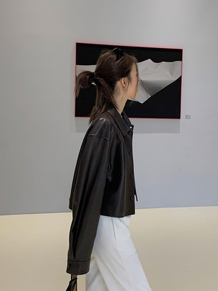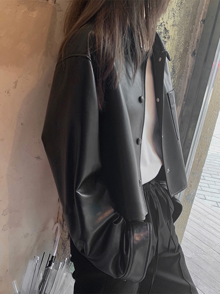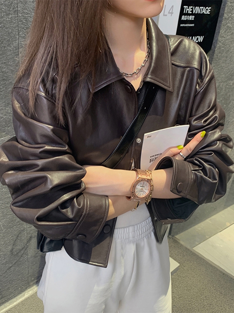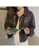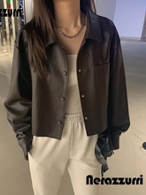 Be the first to review “Nerazzurri Spring Autumn Brown Short Soft Pu Leather Jacket Women Long Sleeve Pocket Loose Casual Korean Fashion Clothing 2025”