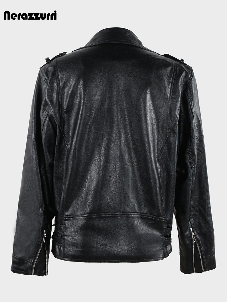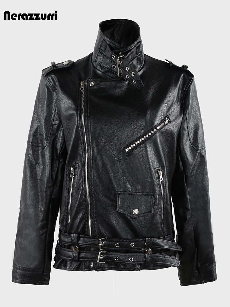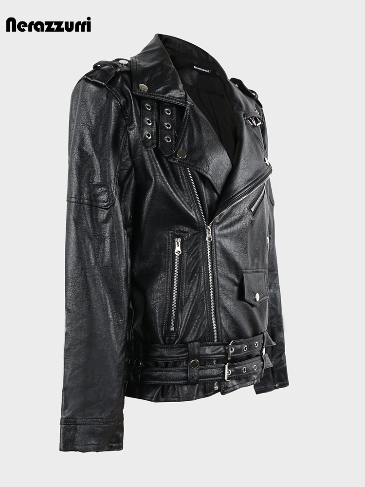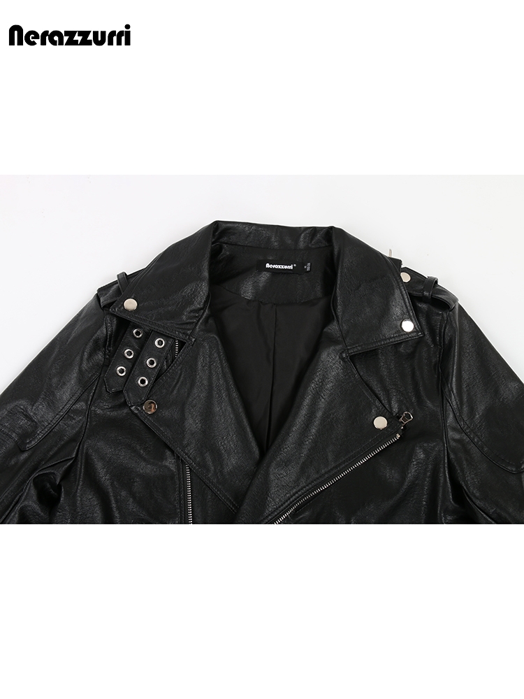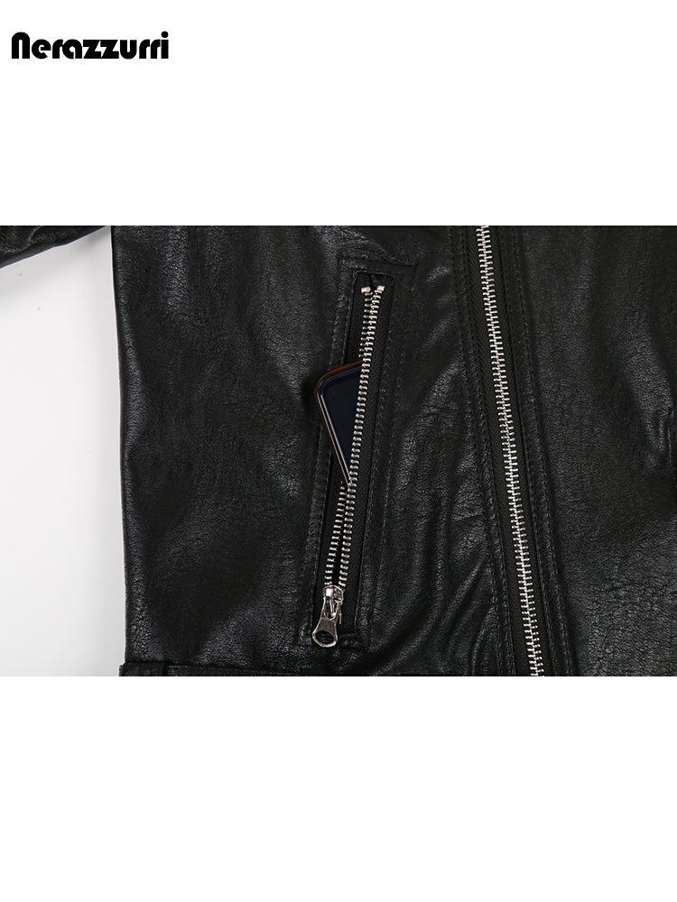 Nerazzurri Spring Autumn Short Windproof Black Pu Leather Moto Biker Jacket Women Two Belts Zipper Luxury Designer Clothes 2025