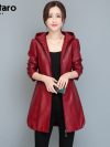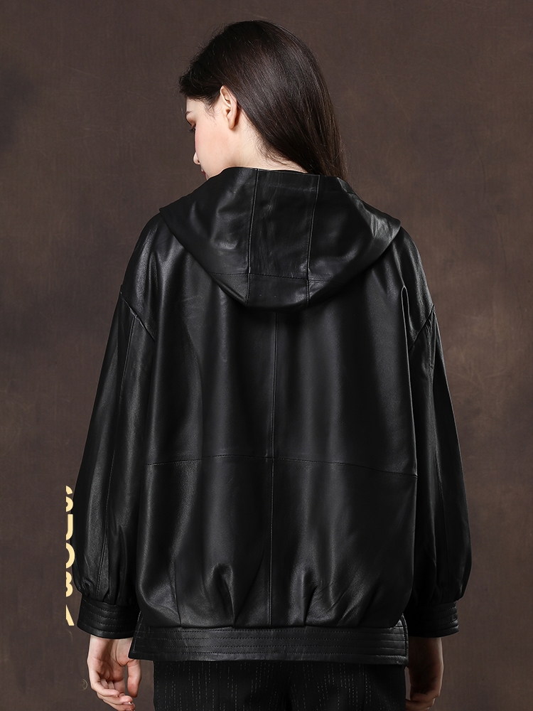 Nerazzurri Spring Autumn Waterproof Black Pu Leather Jacket Women with Hood Zipper Loose Casual Chic Korean Fashion Clothes 2025